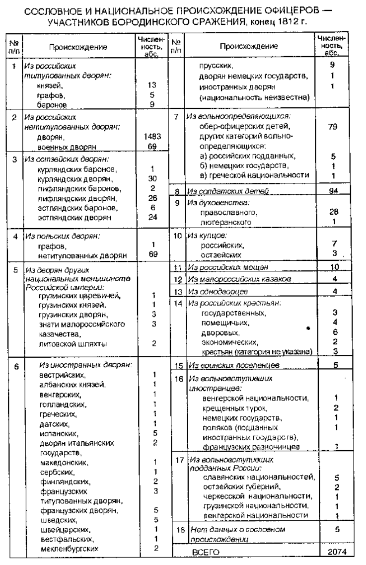 Общий сословный состав офицерского корпуса можно посмотреть в этой таблице