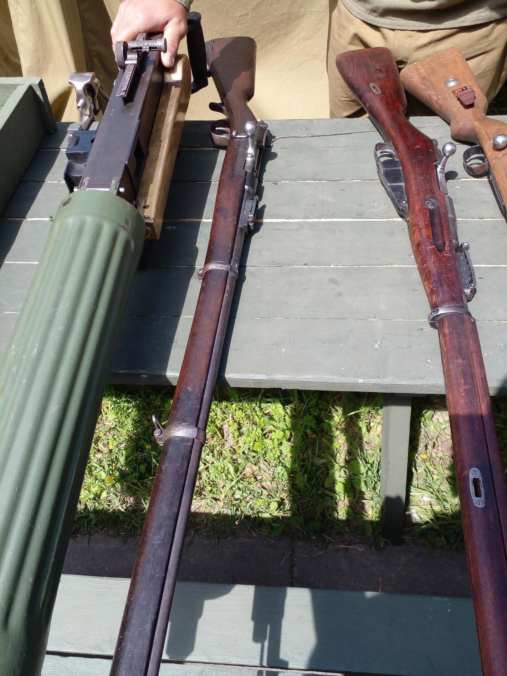 (Пулемёт Максима образца 1910 года,винтовка Гра-Кропатчека, Трёхлинейная винтовка образца 1891 года и Karabiner-98AZ)