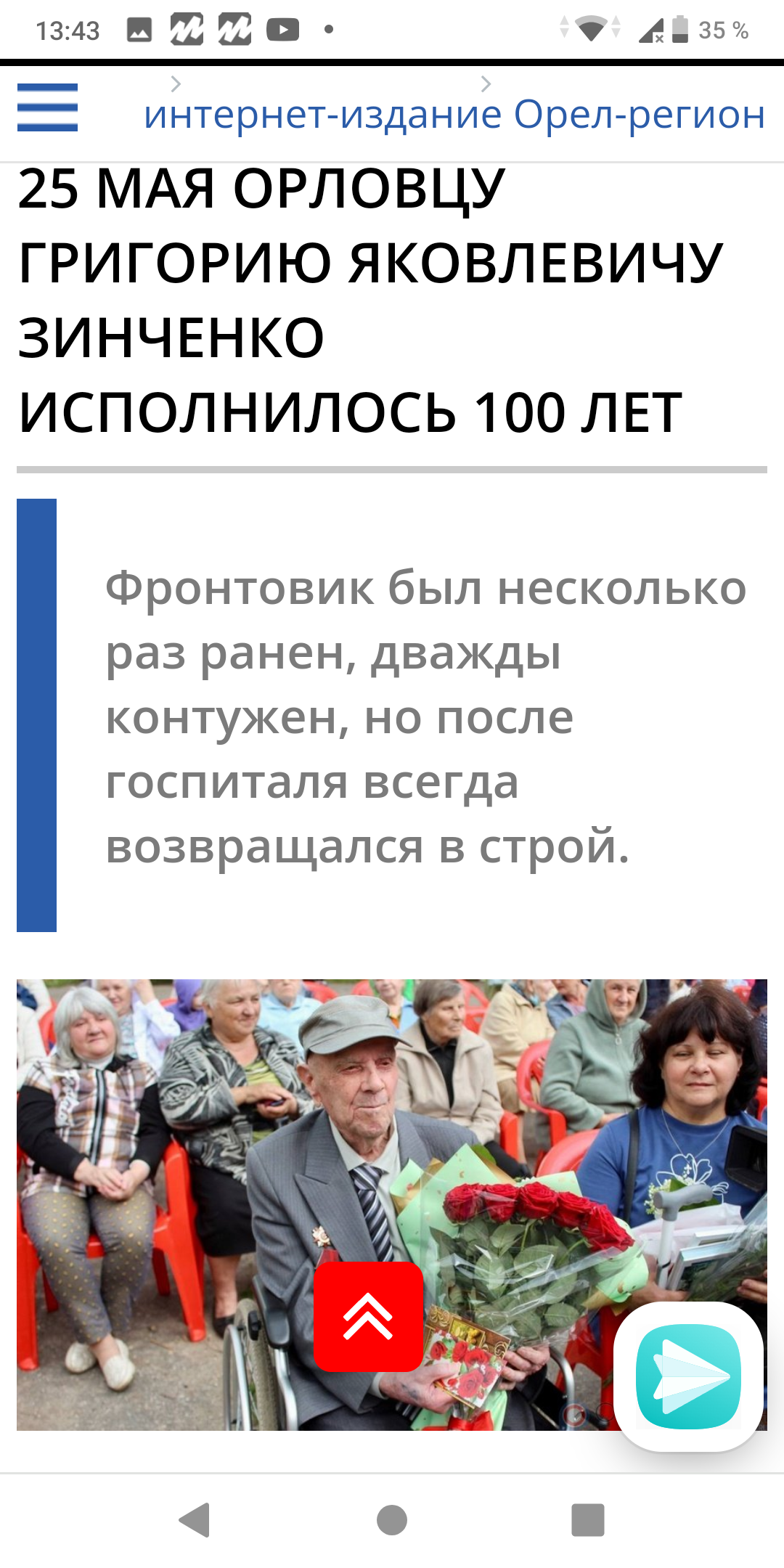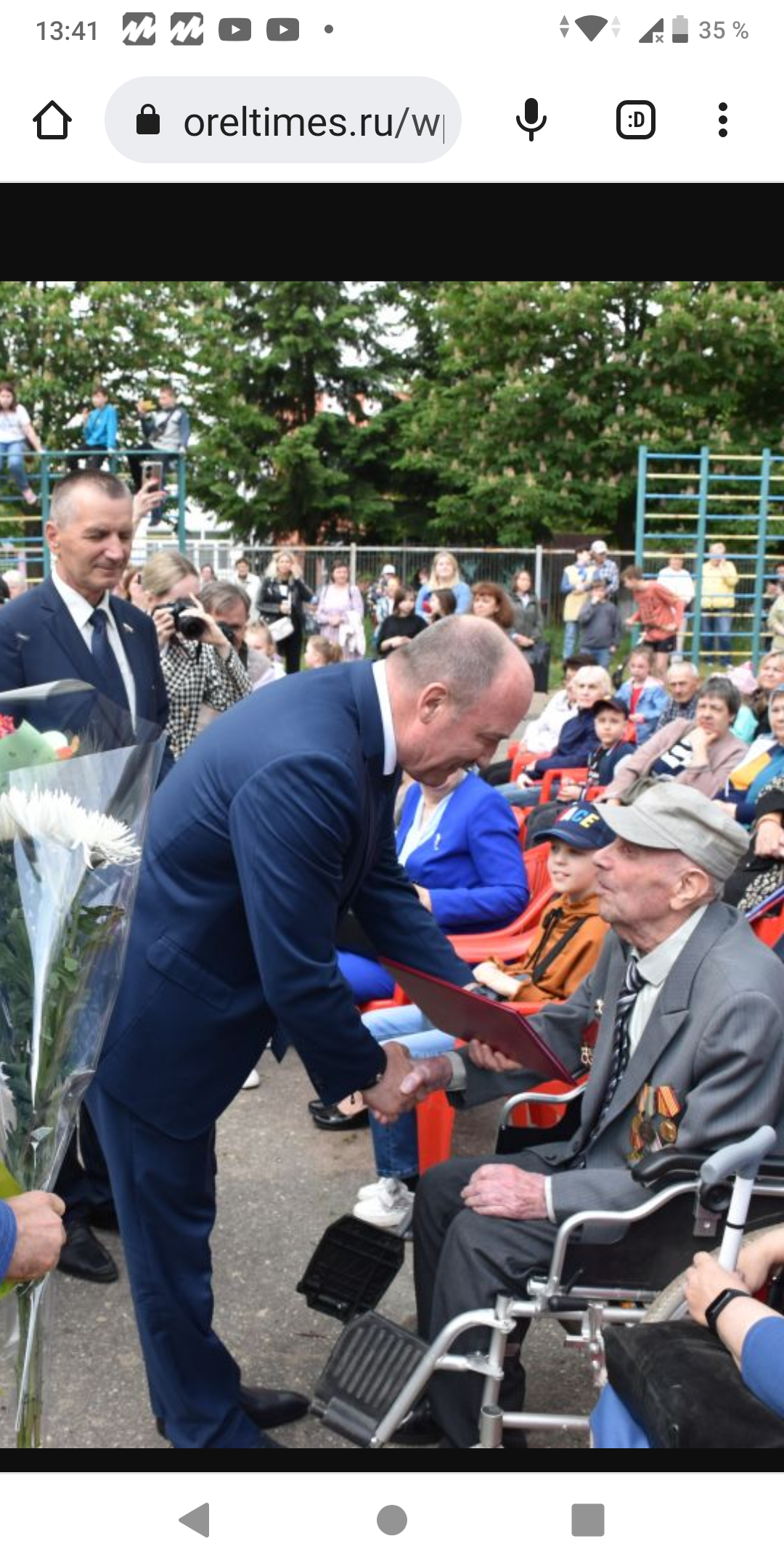 Так вот 25 мая ему исполнилось 100 лет и уже телевидение, администрация приехали поздравлять ветерана. Концерт уже устроил городской Центр Культуры.