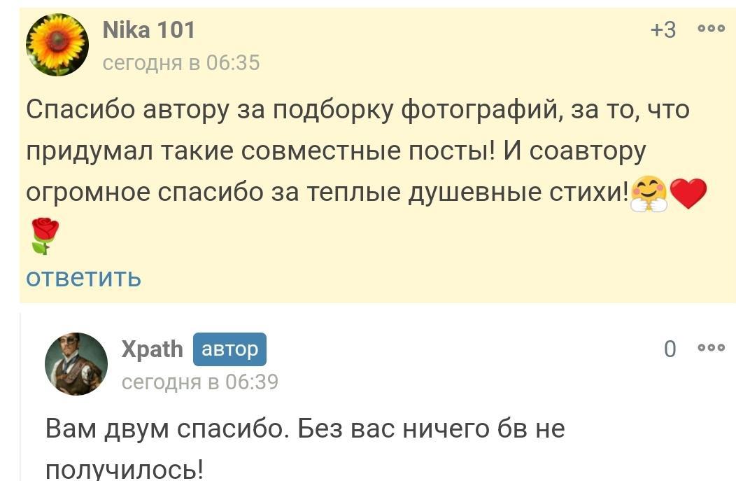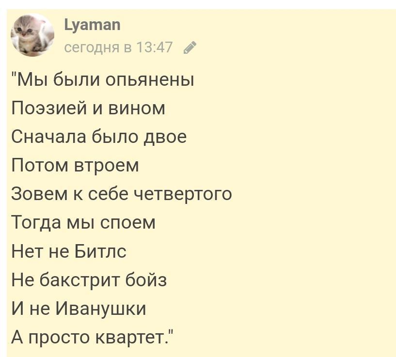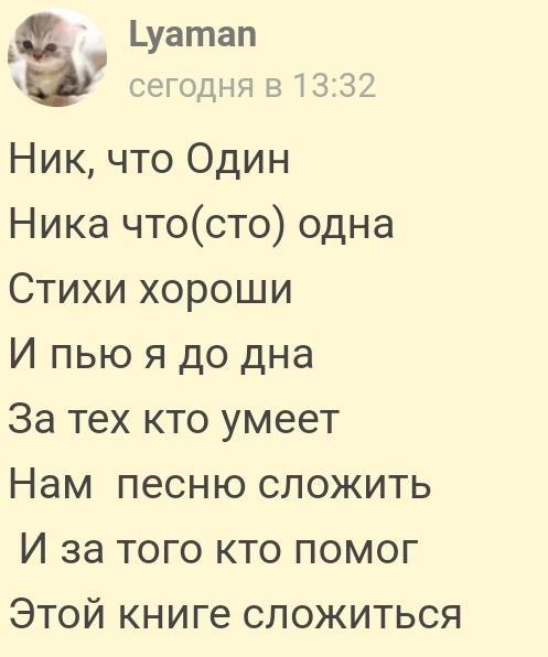 N.B. А это ещё один обмен стихами между моими дркзьями Ником О дин и Nika 101, который у них произошёл в комментариях к моему посту :