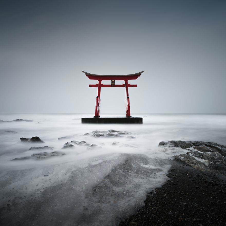 Я с самого начала был очарован контрастом между перфекционизмом и их связью с окружающей средой и природой. Самые распространенные религии Японии - синтоизм и буддизм - живы в каждом уголке страны. Даже далеко посреди океана, на самых высоких горах и в самых темных лесах я нашел несколько святилищ и тории, традиционные японские ворота, которые чаще всего встречаются у входа в синтоистское святилище или внутри него. Тории символически знаменуют переход от мирского к священному. Как фотографу мне нравится создавать четкие, минималистичные черно-белые фотографии, но в Японии я начал использовать свои навыки работы с цветом, чтобы усилить сильные контрасты японской культуры. Большую часть времени я работаю с разными нейтральными