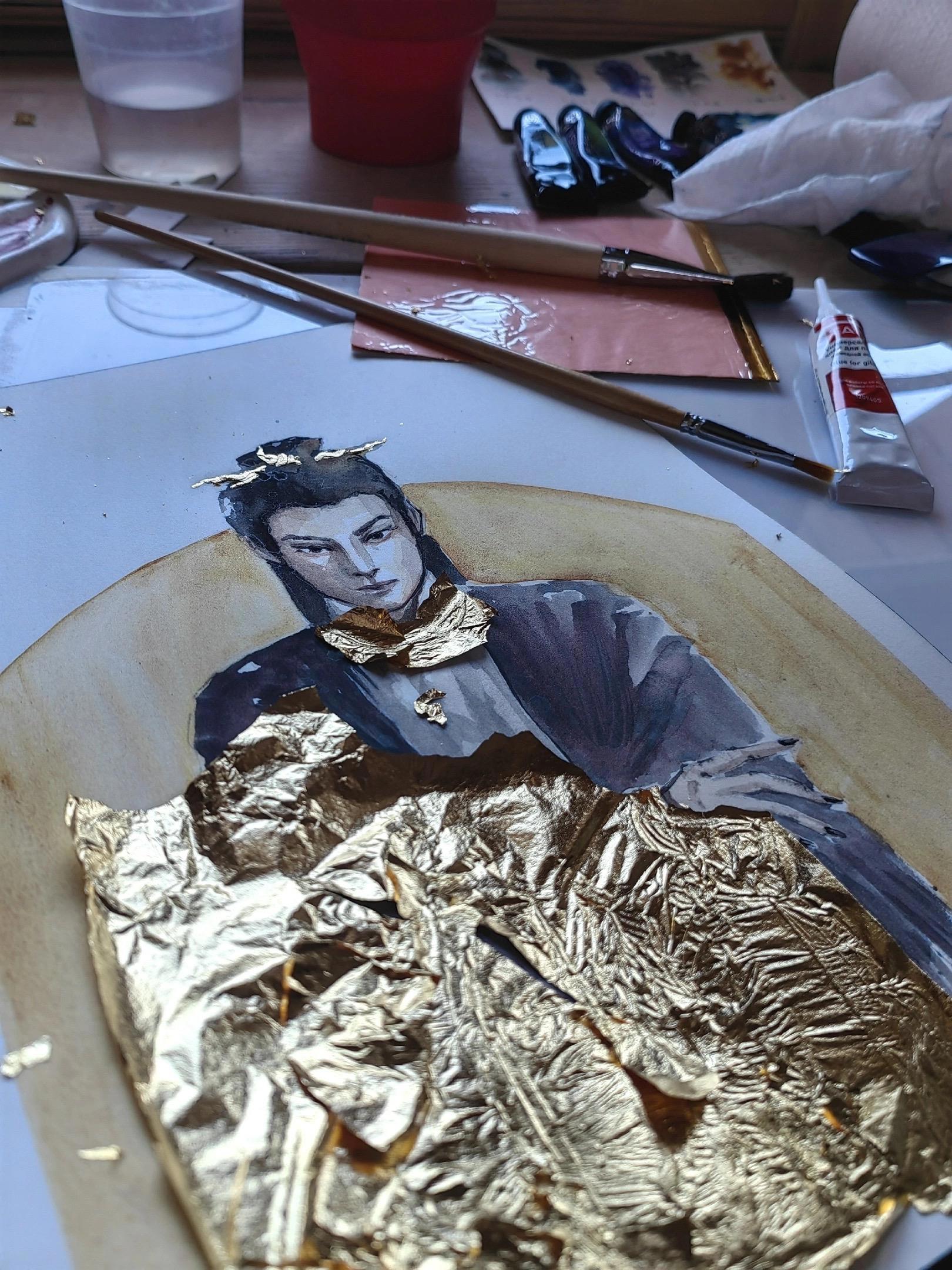 Автор: ElianПокрыла поталью эскиз, нарисованный неделю назад . Результатом, в целом, довольна. Надо бы испробовать поталь на чем-то более масштабном