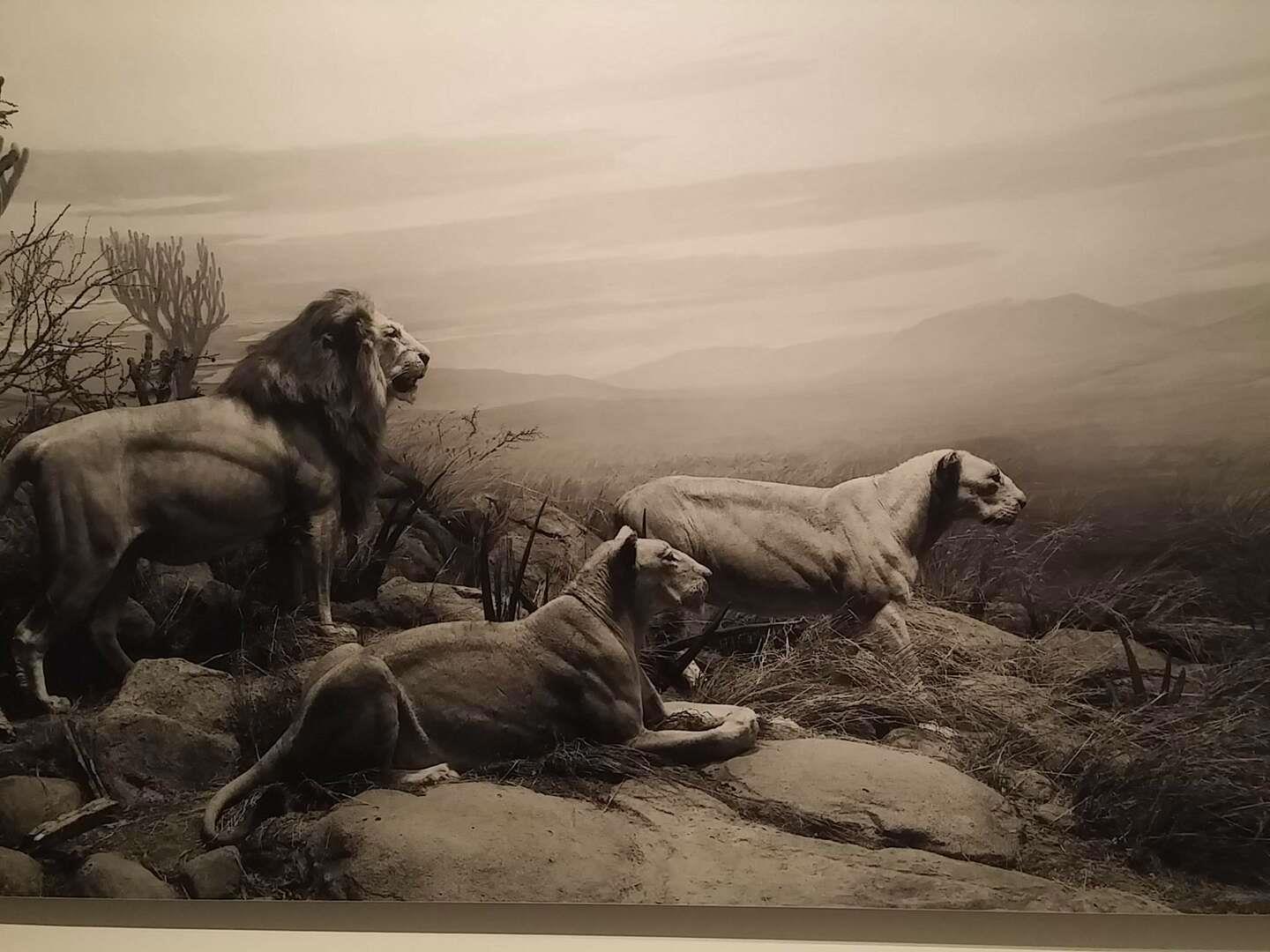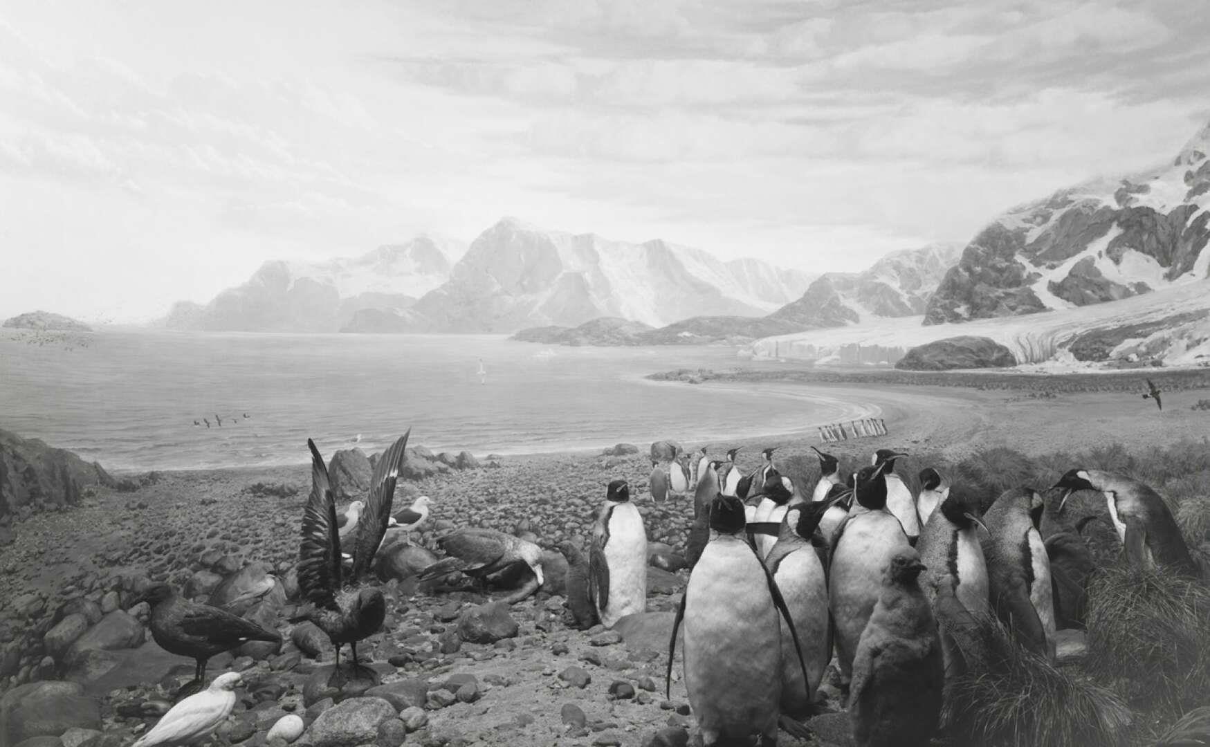 В отличие от изображения диарам в музеях естественной истории, эти образы больше натурального размера, черно-белые портреты исторических фигур прошлого и настоящего.