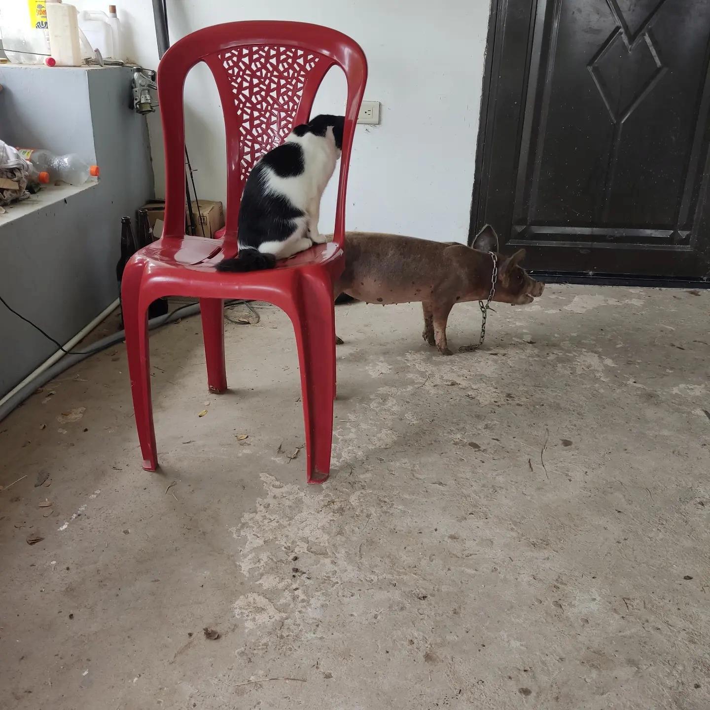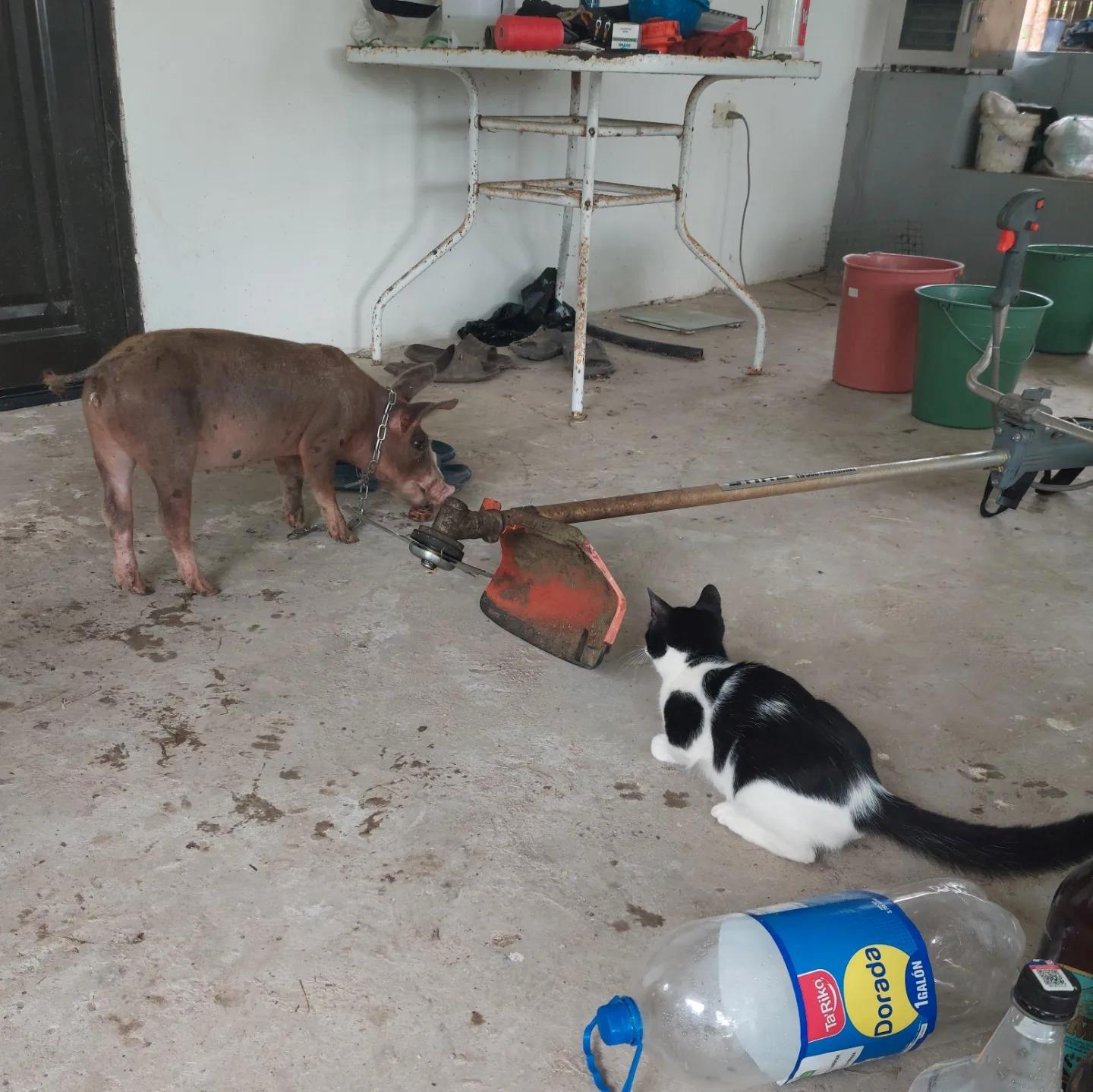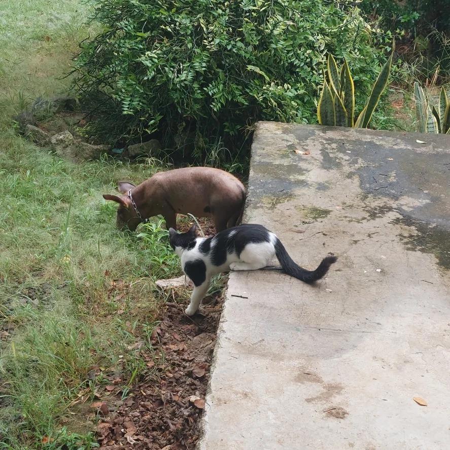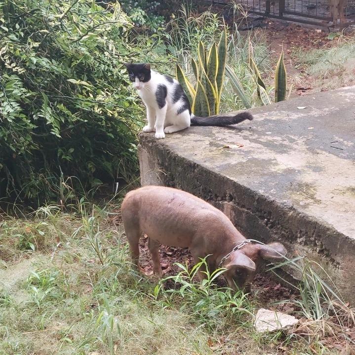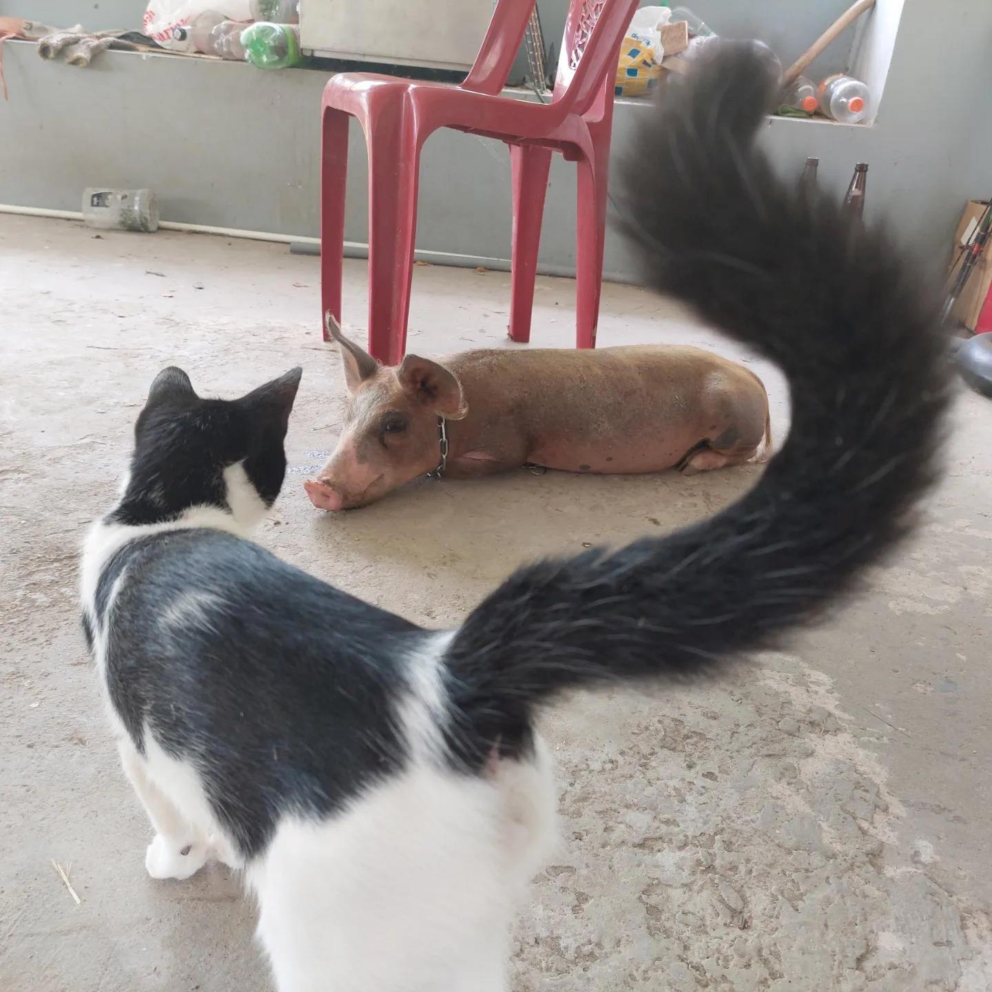 Кот сообразил, что свинья его не съест, а значит, можно охотиться на нее.