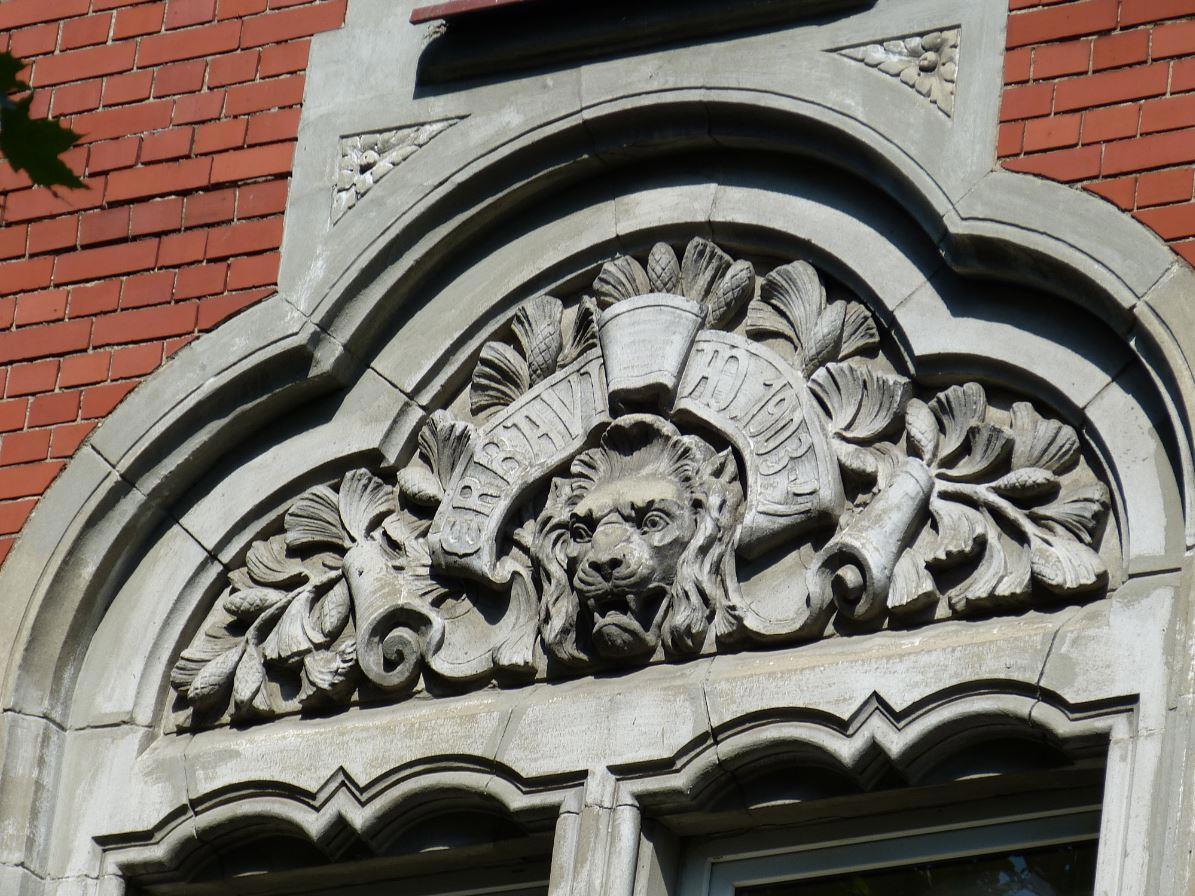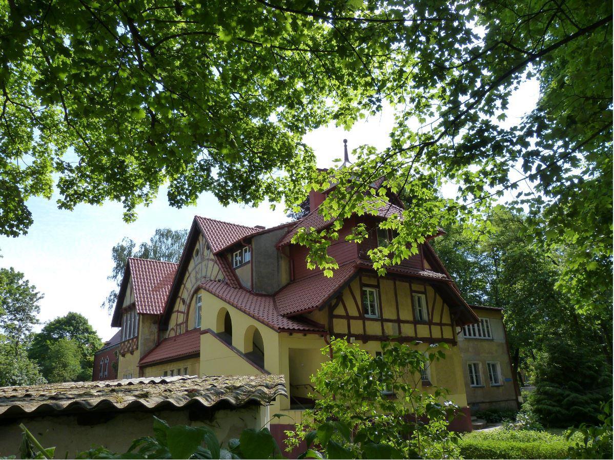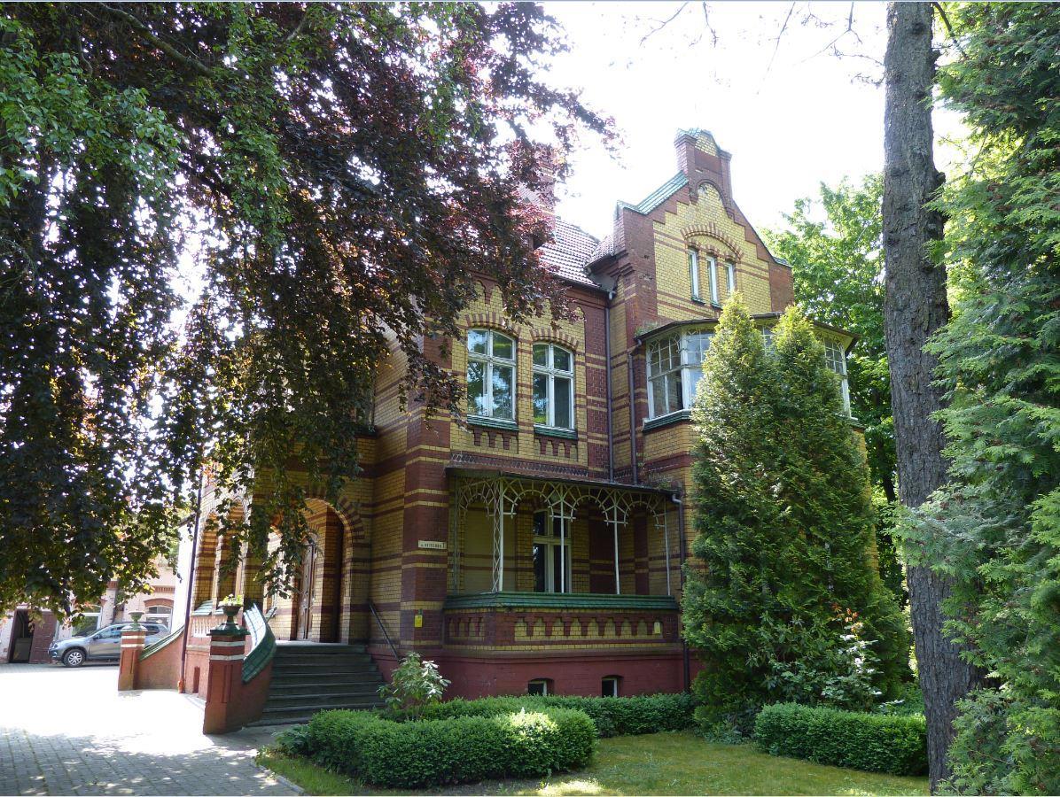 Внушительное здание на фотографии ниже построил в 1911 — 1912 годах для владельца горохового завода Саломона Винтера архитектор Иоганн Людвиг Фридрих Ларс. Правда, исторический облик постройки сильно изменился после пожара в апреле 1945 года: при восстановлении здание получило башню и второе крыло.