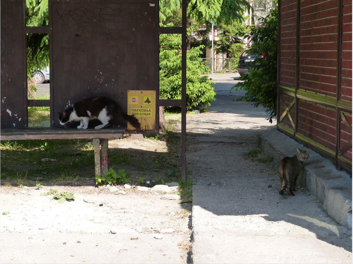 Рядом с этим детским садом на "парковке для собак" тусовались котики.
