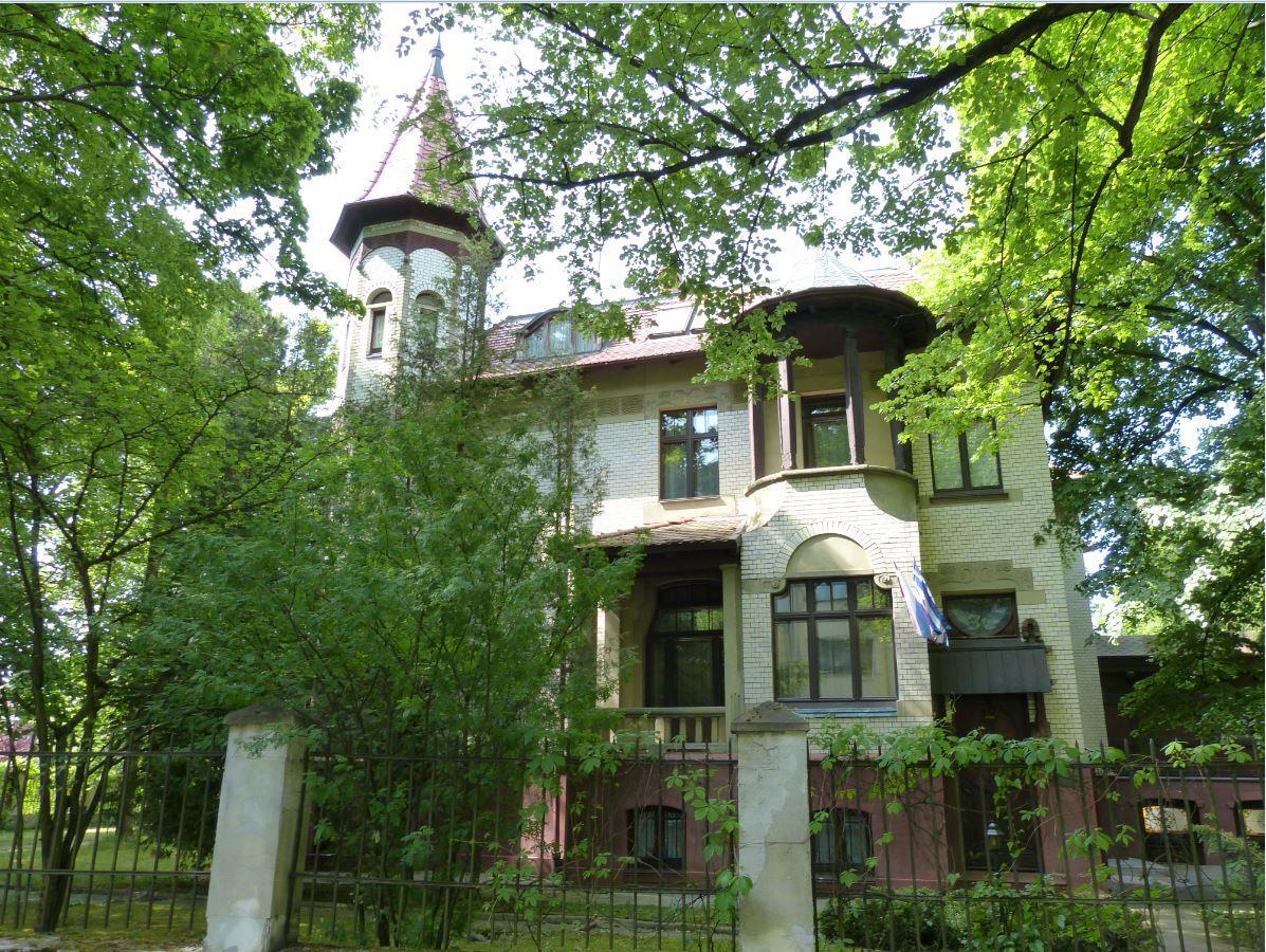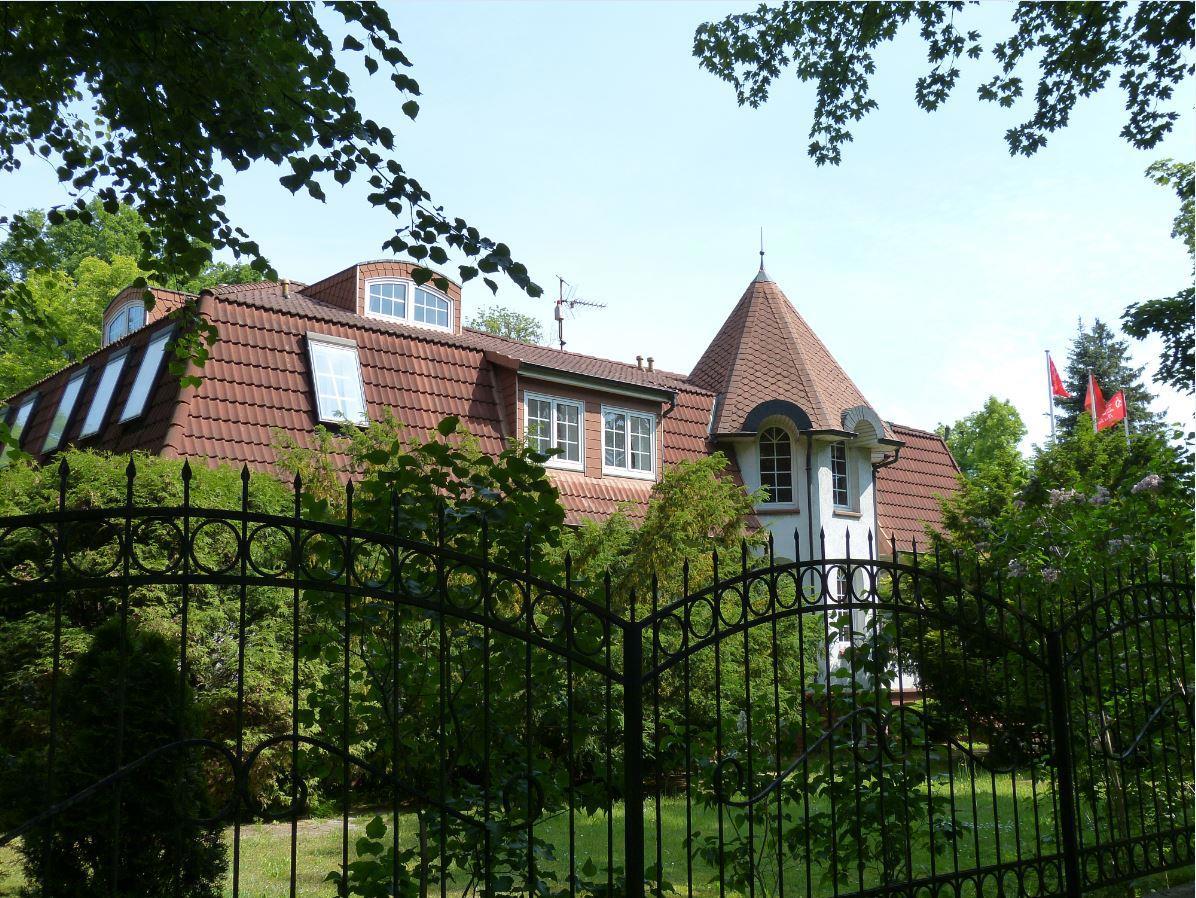 Вилла на фотографиях ниже прячется в густой листве деревьев и обнесена оградой. Так что целиком в кадр никак не помещается в тёплое время года. Построили её в 1905 году для директора Северогерманской Кредитной Компании Эрнста Михаэлиса.