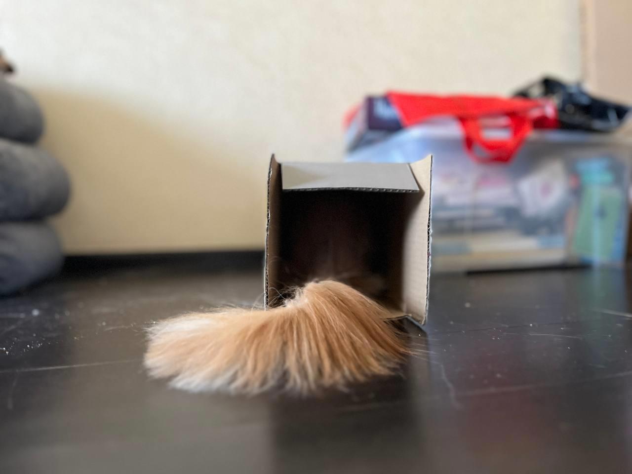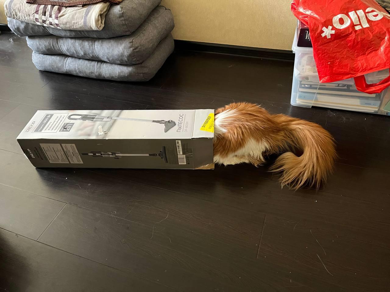 Автор: Анастасия ЖурбаИ до стрижки Кнопка пыталась влезть в коробку от вертикального пылесоса.
