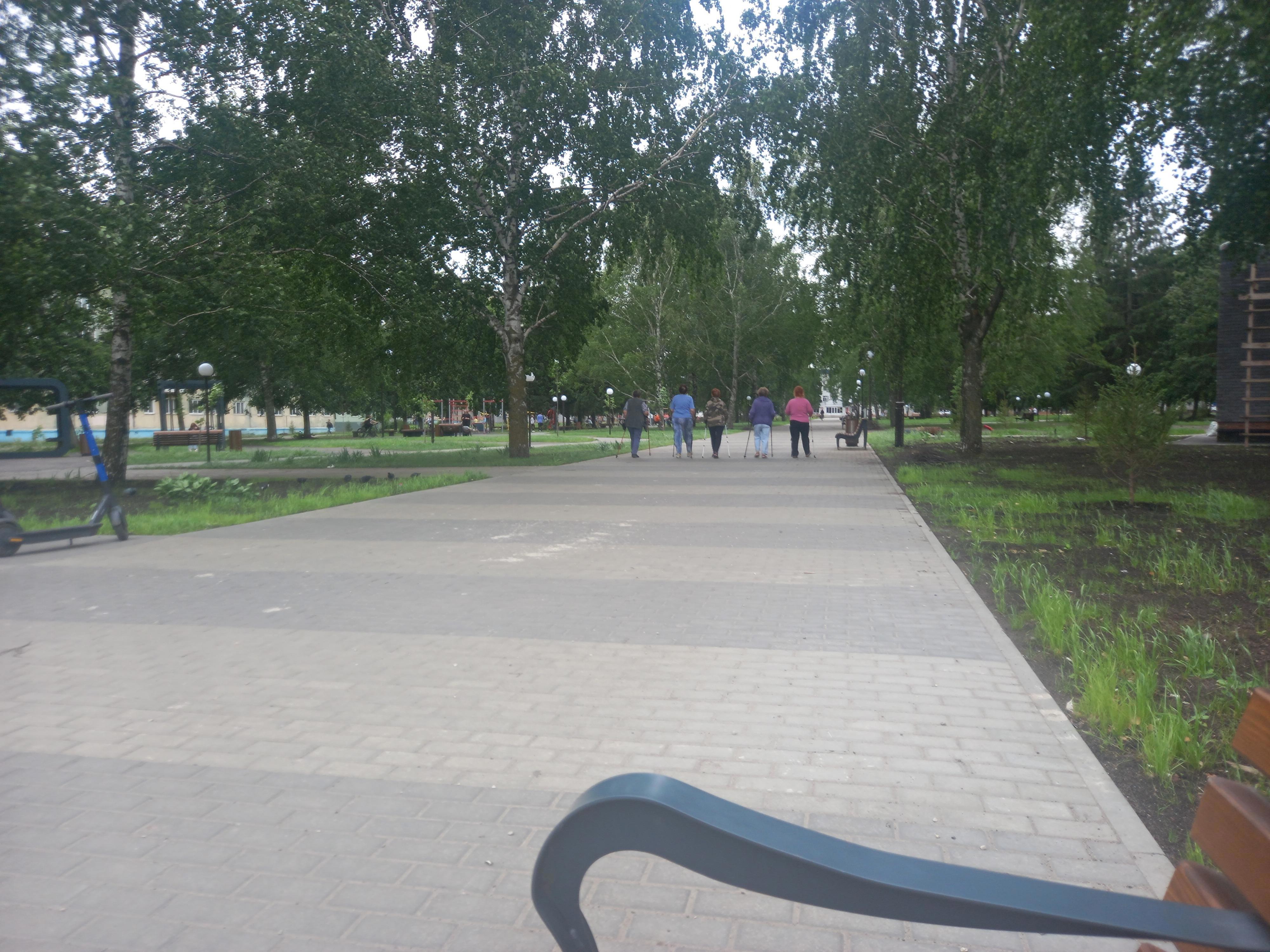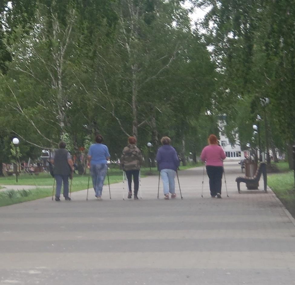 Наши бабушки скандинавскую ходьбу во всю практикуют. Но меня не сам факт удивил -- таких у нас много. Улыбнуло то, как слаженно они дошли до конца тротуарной дорожки и развернулись обратно. Захотелось им поапплодировать!))) Правда, дальше ритм немного сбился: одна приотстала, потому что ей позвонили. Кто-то из подруг ее подождал...