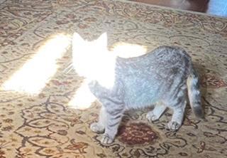 Не совсем британские, но все же учёные (в лице меня) наконец-то успели заснять момент телепортации кошки: на фото виден частичный переход головы с ушами в плазматическое состояние, пригодное для нуль-транспортировки, и видна остальная кошка, ещё не приступившая к форматированию. Через доли секунды на этом месте будет файл кошка.зип, который отправится по адресу лежанка@подоконник.дом, находящемуся в двух метрах от него. Там произойдёт сборка плазмоида обратно в кошку.