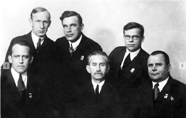 Алданское месторождение было открыто в Якутии в начале 1920-х. Официальным днем открытия считается 19 июня 1923 года, когда вольный старатель, якут Михаил Тарабукин и «красный латыш» Вольдемар Бертин, возглавлявший первую трудовую артель, встретились у ручья с характерным названием Незаметный и нашли там золото. Вот участники этой первой артели, Бертин – второй слева.