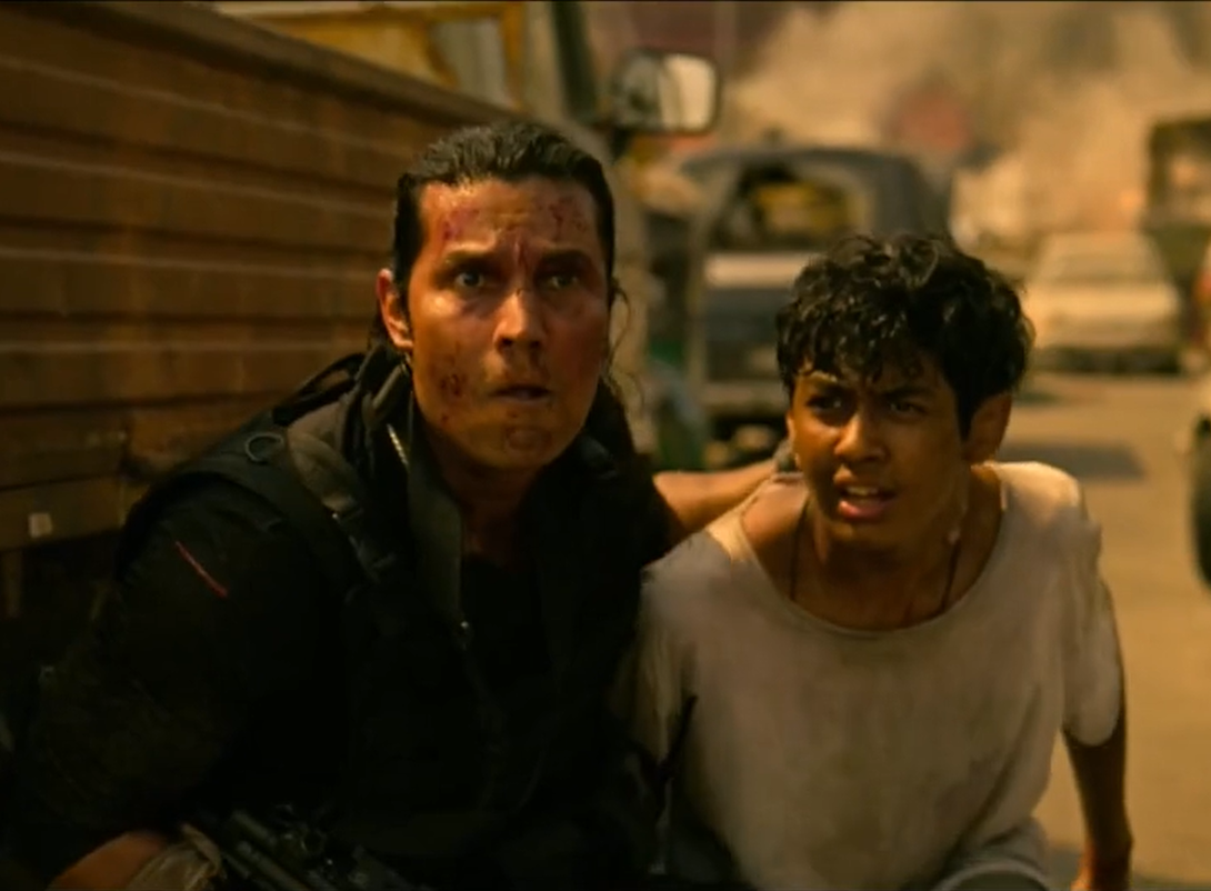Весь фильм они спасают мальчишку, сына наркобарона, сидящего в тюряге, за которым охотятся все, кому не лень. Почему - мне осталось неизвестным, т.к. хинди я не понимаю. Изначально его похитил конкурент, барон нанял команду "наших" спецов, а потом кинул, велев собственному заместителю всех замочить после того, как те сделали самую тяжёлую часть работы, и забрать ребёнка. Но Хемсворты в огне не горят и в воде не тонут! Они там медитируют. Пруф:
