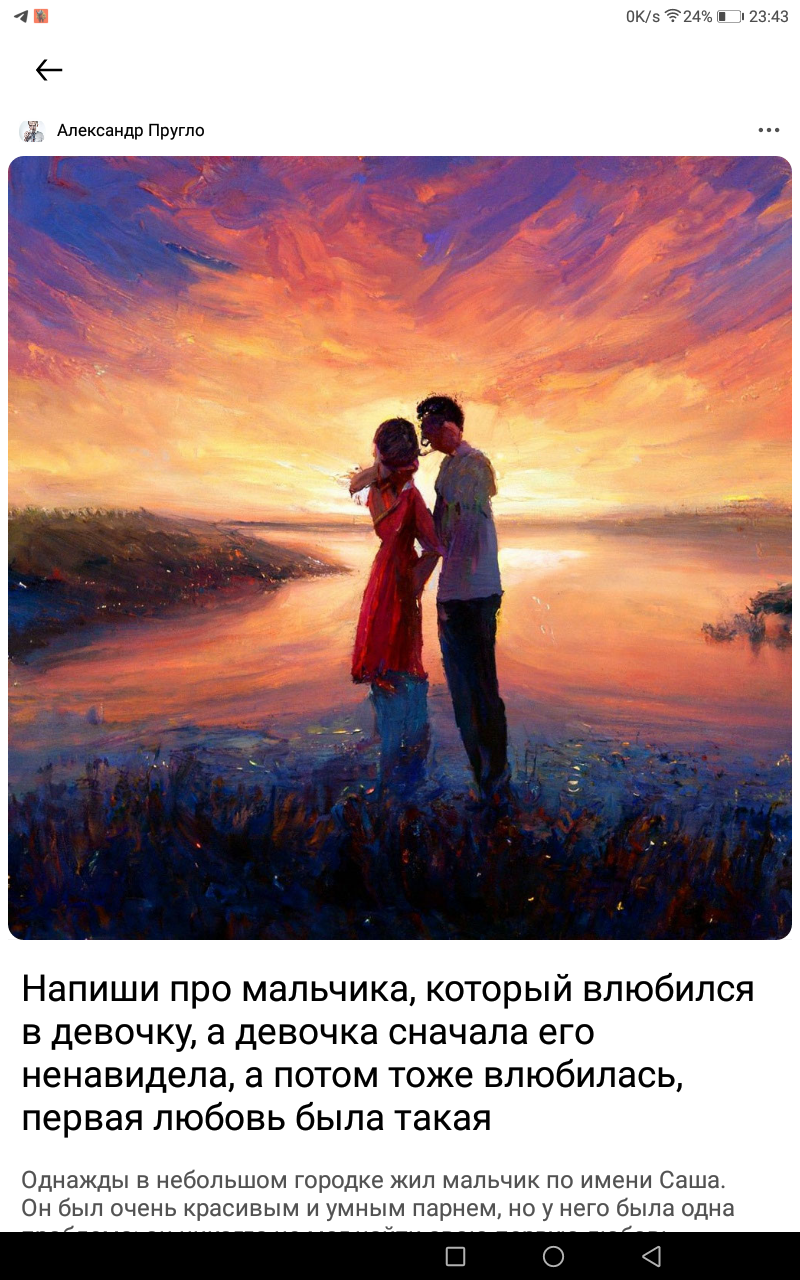 Однажды в небольшом городке жил мальчик по имени Саша. Он был очень красивым и умным парнем, но у него была одна проблема: он никогда не мог найти свою первую любовь.