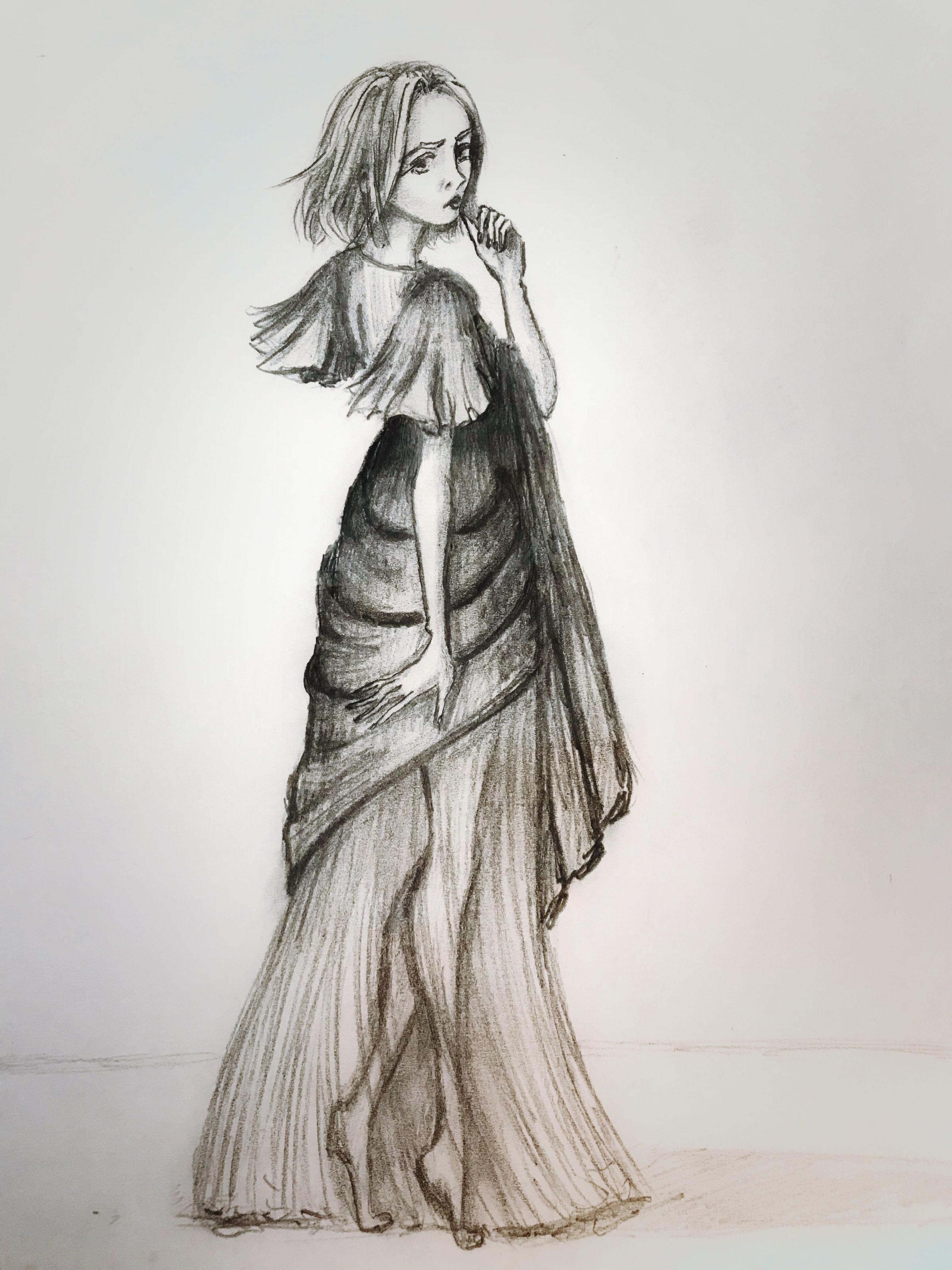 Поделюсь иллюстрацией Сайарадил, которую я нарисовала давным-давно в самолете, когда только задумывала историю.