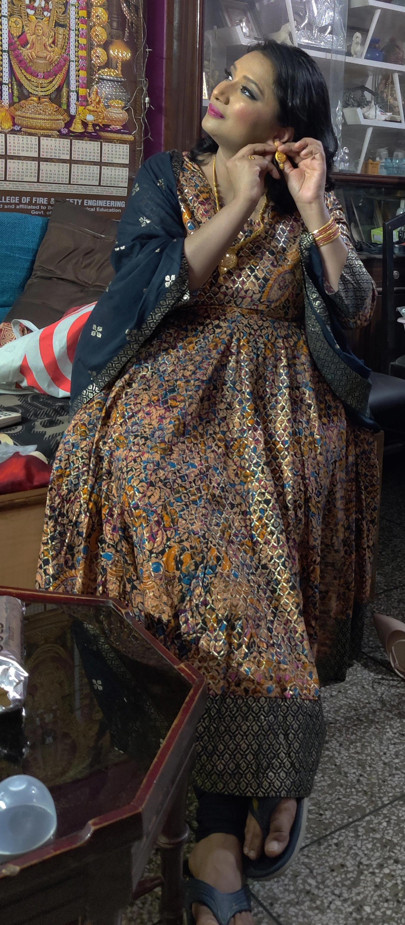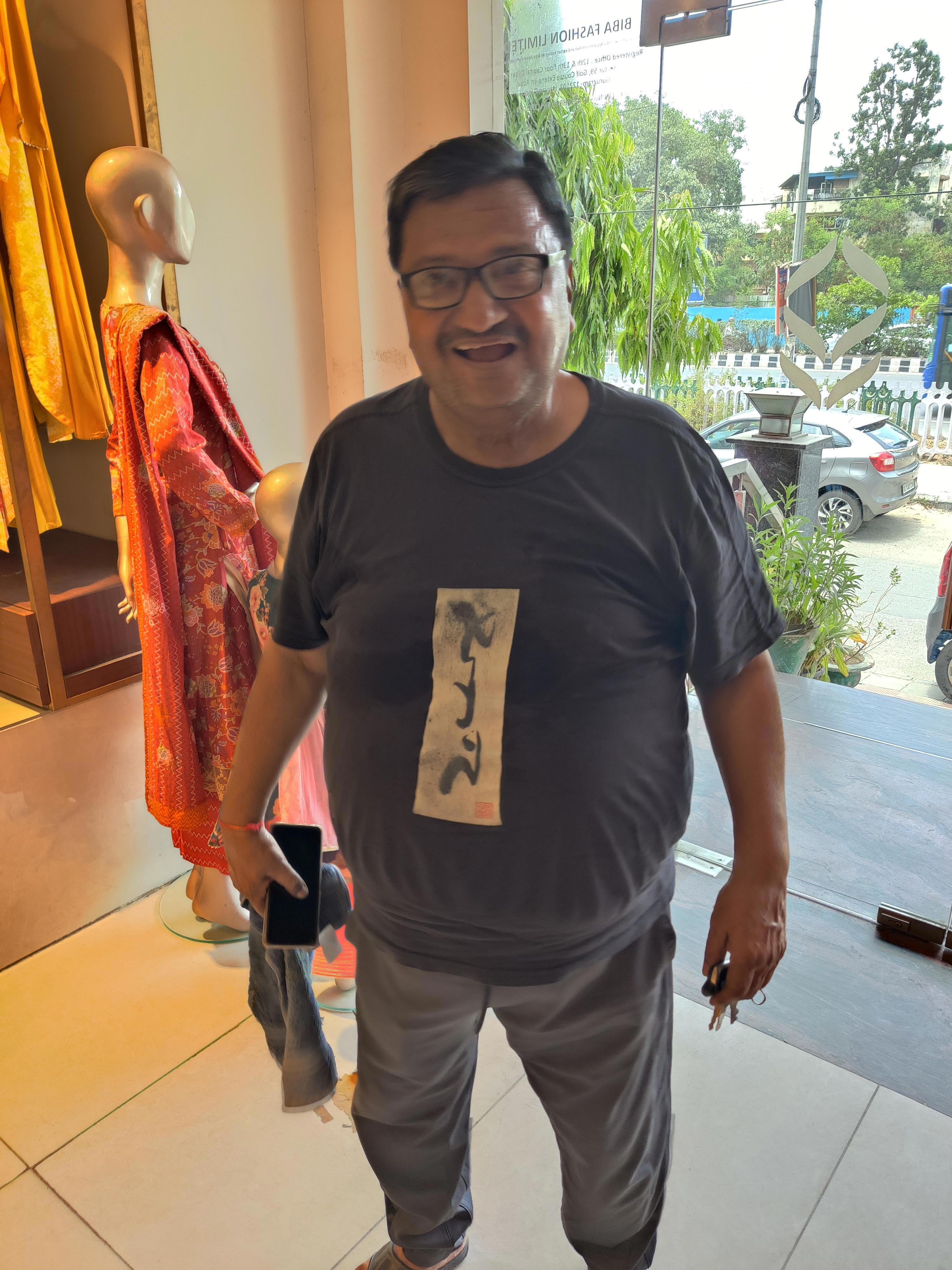 Да, там действительно "эльфийское слово из трёх рун." Я ему не стал объяснять, от греха подальше... Но ХЗ, он мог бы и заценить... Говорят, по молодости у него беханчод (сестроёб) чуть ли не любимым словом было. Конечно же вечером он переодеться успел. Вообще, народ пришёл почти как на свадьбу одетый. Была хохма - индусы в брюках, костюмах, а единственный американец в традиционном индийском прикиде... Фото с вечеринки на телефоне нет - руки были заняты дочкой, разве что вот - жена перед выходом прихорашивается: