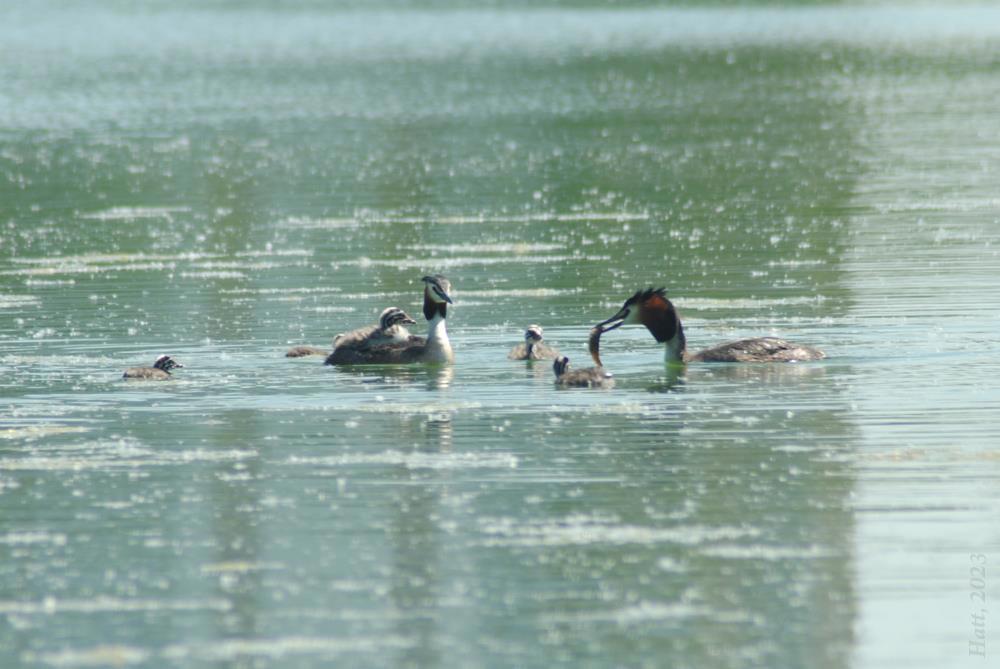 Автор: Анна НовиковаУчаствовать в дискуссиях на тему семьи, ролей и около того, регулярно вспыхивающих то тут, то там, не люблю из-за их чрезмерной эмоциональности и полной бесперспективности, но, чтобы не совсем отстать от сетевой жизни, внесу свой вклад в виде кадра с недавней фотоохоты. Семья краснокнижных больших поганок (чомг) на пруду, который мы называем Химболотом (некогда там был химический завод, и, по народному преданию, вода не замерзала даже в сильные морозы). Чомга-папа принимает активное участие не уверена, что в восПитании, но в питании точно.