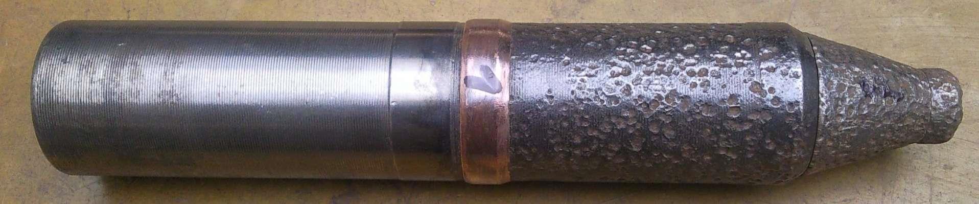 Снаряд имел стальной корпус с заостренной головной частью и донным взрывателем. Пробивал до 20 мм стальной лист. При стрельбе по морским целям снаряд пробивал обшивку корпуса вражеского судна и взрывался внутри. Для справки : толщина обшивки корпуса подводной лодки типа "Щ" была 13 мм, толщина обшивки корпуса эсминцев проекта 7 составляла 5-9 мм .