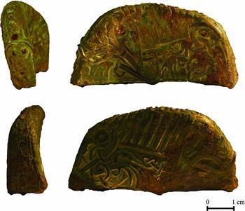 Изотопный анализ премоляров пяти скелетов из корабля Салме II (второй корабль) и артефакты, найденные там, указывают на то, что погребенные в Салме были с территории нынешней центральной Швеции, т. е. принадлежали к скандинавскому племени свеев. Подробнее об этом я писала в этом посте и в моей повести "Корабли с Сааремаа", вдруг кто-то захочет почитать. Вот фото рукояти меча из позолоченной бронзы, украшенной изображением зверя с человеческим лицом и красными камнями – альмандинами (разновидность граната):