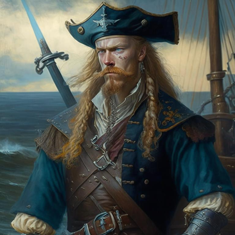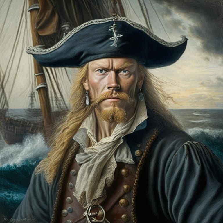 Но нейросеть отказывается выдавать картинки по запросу "шведский пират начала XVIII столетия" :) Картинку удалось из неё выжать только по запросу "пират начала XVIII столетия, скандинавской внешности, на фоне моря и корабля" :)))
