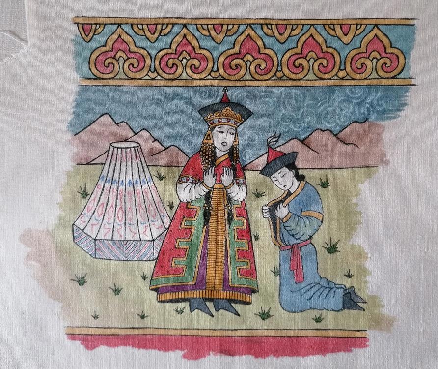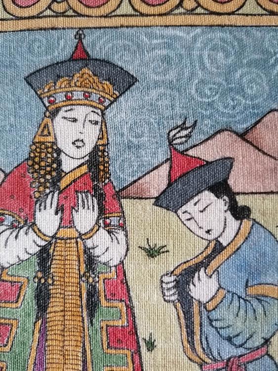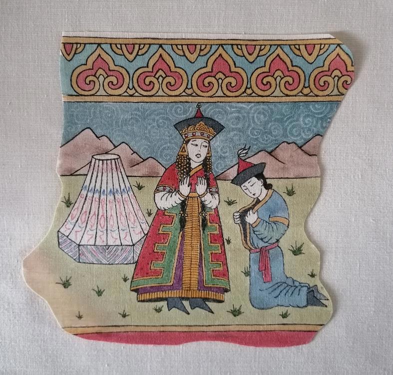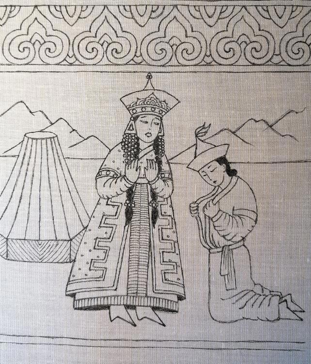 Ужасно хотелось использовать эти прекрасные экзотические головные уборы монгольские для ханской дочки, но в тексте было про косы, которые хлестнули ее собеседника по лицу, когда она резко отвернулась, так что упс.