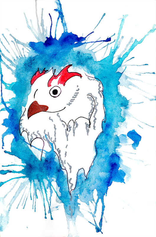 И вот, значит, я восхищаюсь без задней мысли и тут замечаю сети и трезубец, и в моей голове что-то мелькает, но я говорю себе: «Нет, не может быть, что такая работа и для меня». И я смотрю другие работы, пытаюсь убедить себя, что на них тоже можно найти детали, которые есть в моей истории, но возвращаюсь к этой. И она правда для меня! До сих пор не могу поверить. И мне хочется говорить про неё не «рисунок», а «картина».