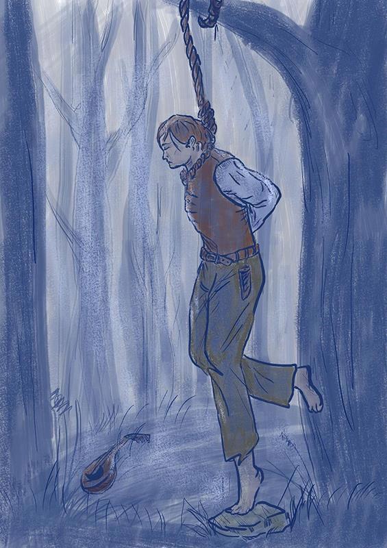 Правда, Ната повесили не вниз головой, но всё равно! Я тогда решила, что пусть как будто я закладывала этот смысл специально, и если кто-то ещё спросит, я им скажу с умным видом, расправляя усы: да, знаете, вся эта глубина, я так и хотела, с самого начала...