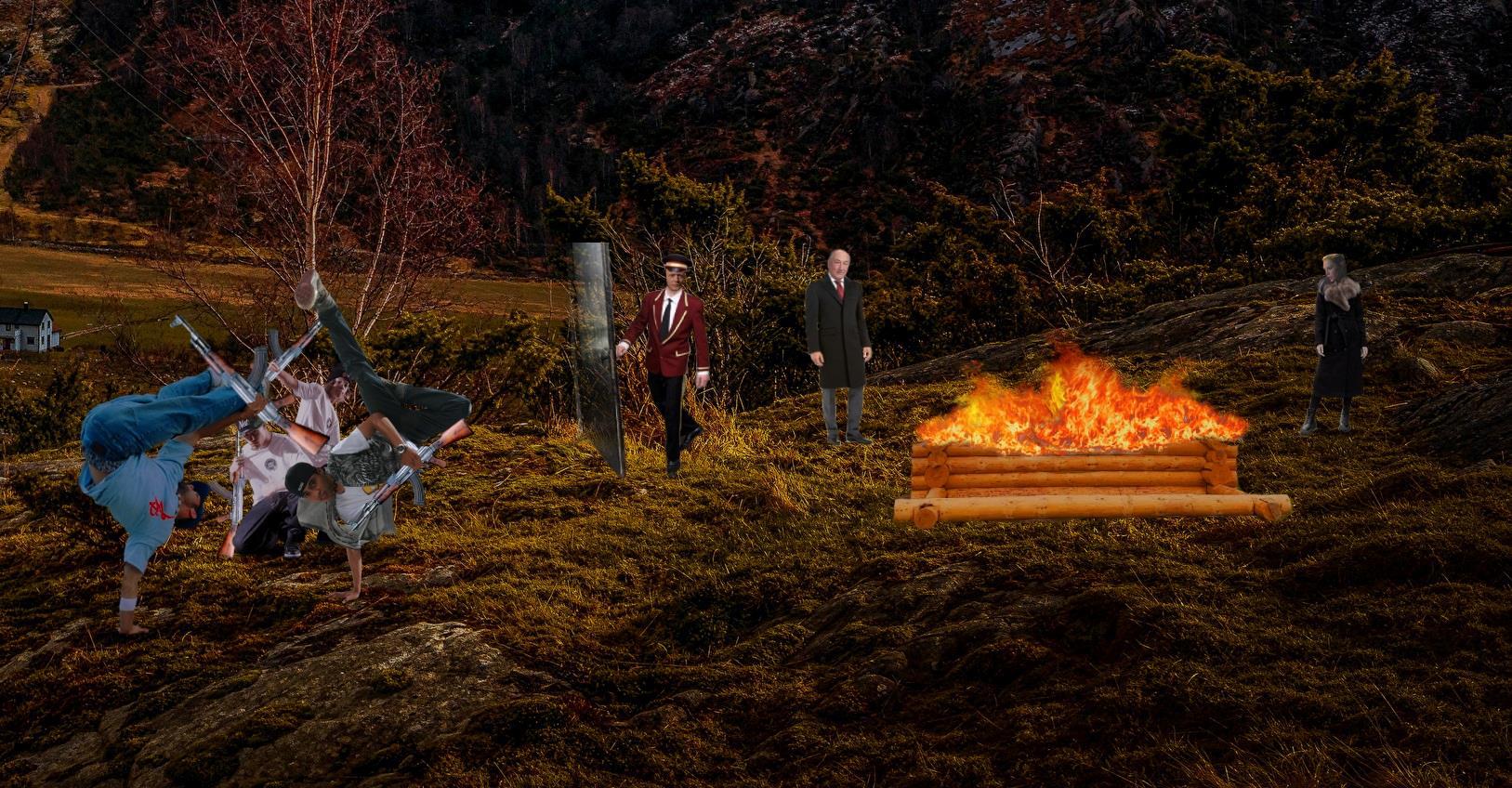 Приготовившись к обряду, все выровнялись по струнке, глядя на приближавшегося Верховного. Молодые на площадке кинулись танцевать ритуальные бойцовские танцы, крутясь под электронный музон с басами и богатыми ударниками. Пацаны падали и вертелись волчком, прыгали вверх, крутя в руках автоматы, клацая прикладами по земле, выбрасывая оружие вперед на вытянутые руки, приседая и снова вскакивая высоко вверх. К будущему кострищу подошла Ветка. Дочь Хаса, в длинной, до пят черной песцовой шубе, поправив на золотых своих волосах черный теплый платок, присела на табурет рядом с отцом.Как бы не замечая никого вокруг Клюв подошел к Ветке, громко, как артист на сцене, спросил “Как дела, доча? И где делся Хас?”- Да так нормально дела, Верховный, да только Хас умер, - Ветка, не вставая, подняла к Клюву узкое свое тридцатилетнее лицо с зелеными глазами, показав слезы.
