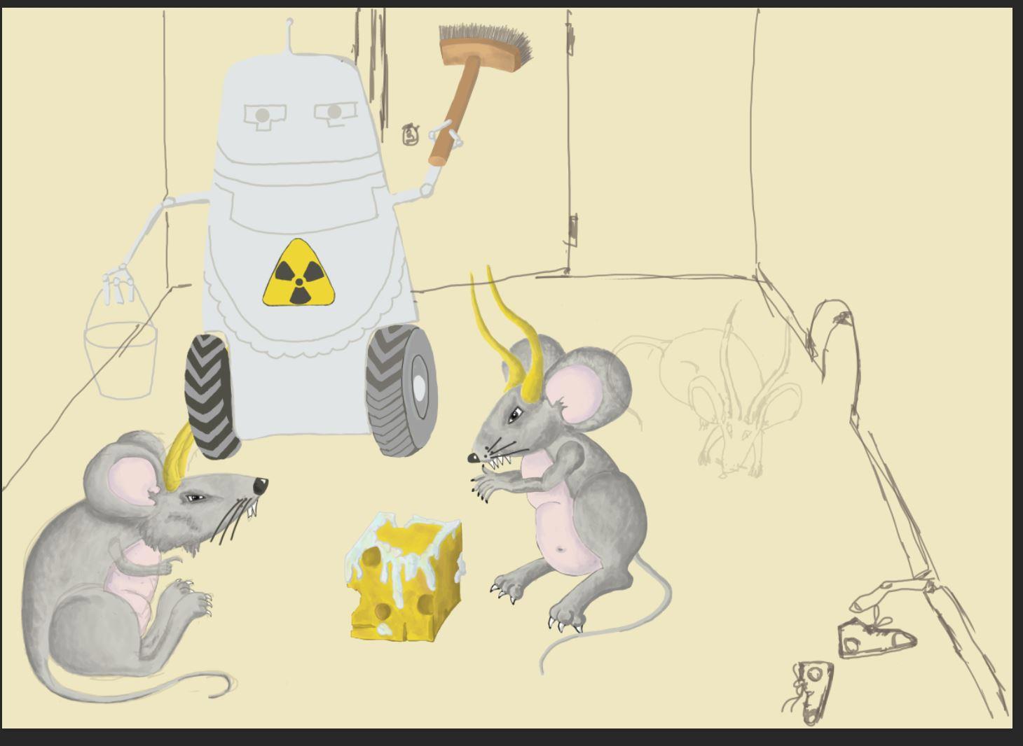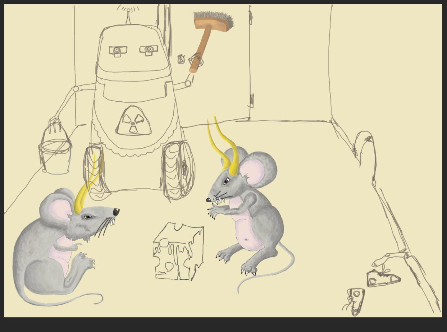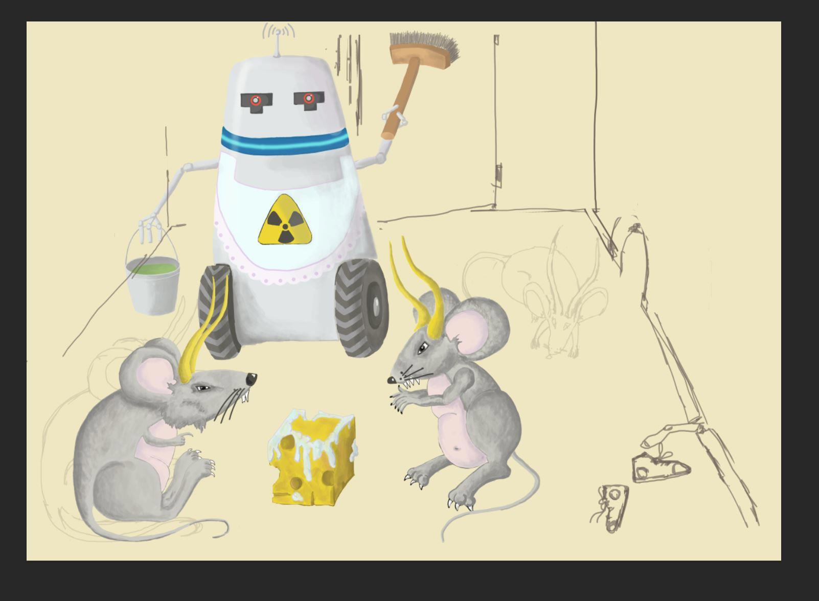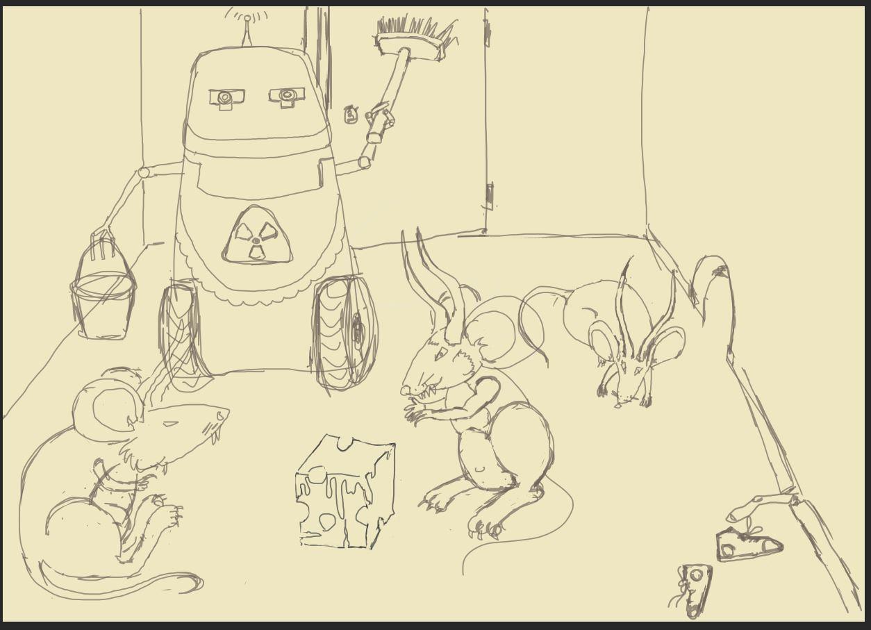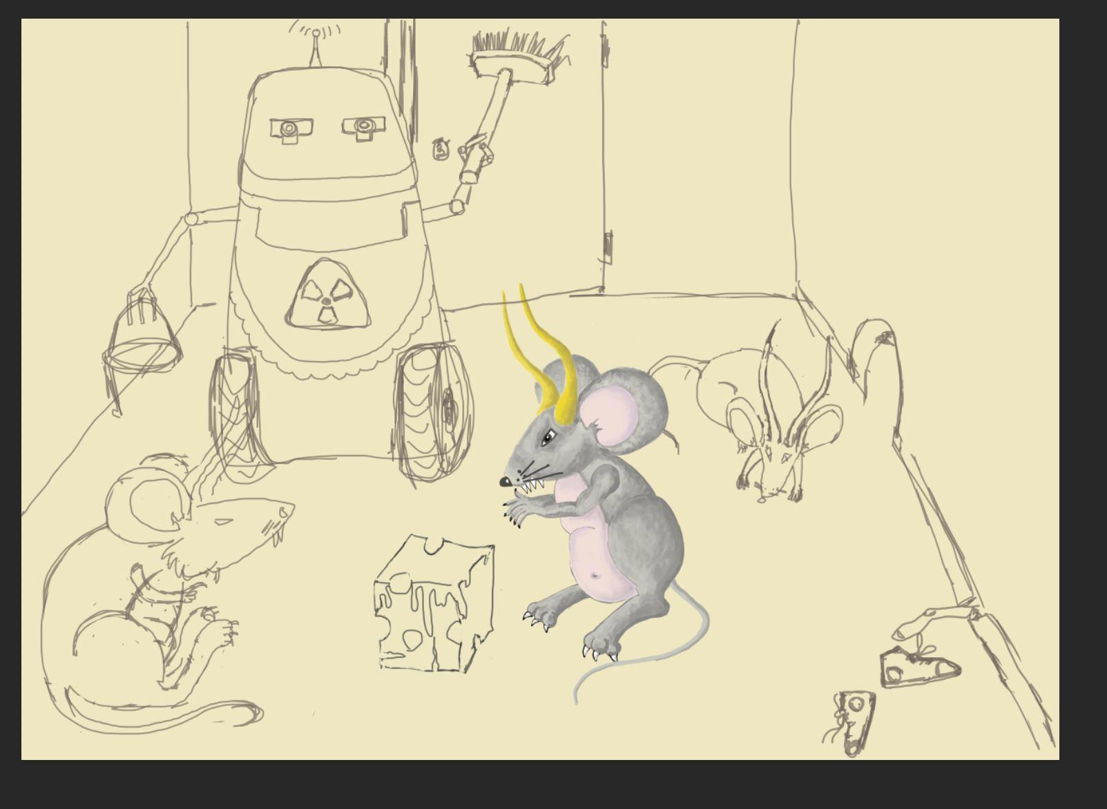 А тут ниже накидаю впроцессников - сама люблю смотреть, когда другие публикуют стадики, и как потихоньку получается рисунок. Может кому тоже будет интересно) Скажу, что моей большой ошибкой было решить, что главное - мыши и робот, а фон потом. В итоге пришлось осознать, что от фона зависит оочень многое)) в следующий раз обязательно это учту. Или вообще начну сразу с фона))