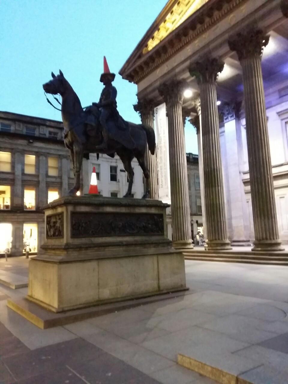 Традиция надевать дорожный конус на голову статуе герцогу Веллингтону или его лошади существует в Глазго с 1980-х годов. Вид статуи с водруженным на него конусом считается одной из достопримечательностей Глазго. Путеводитель Lonely Planet в 2011 году внес его в список 10 самых удивительных статуй мира.