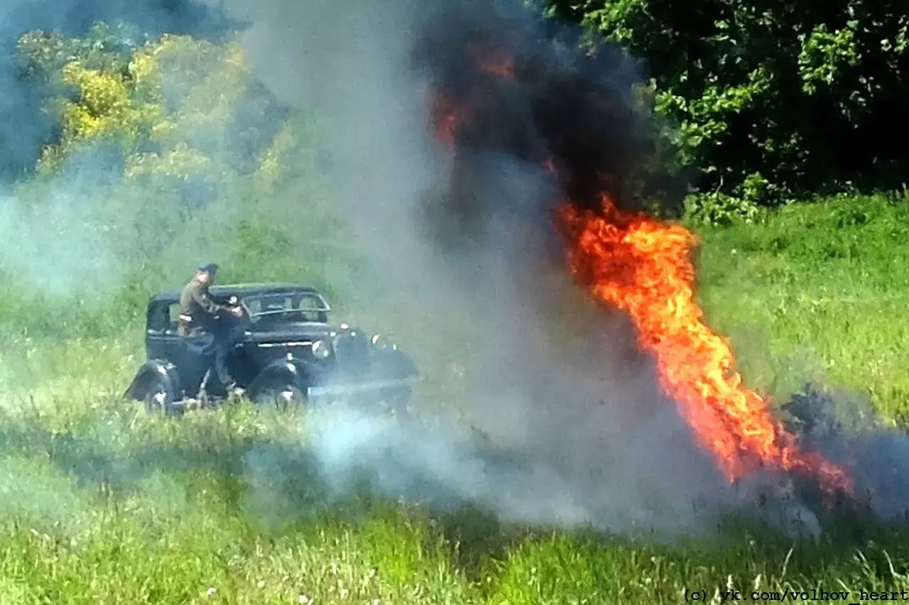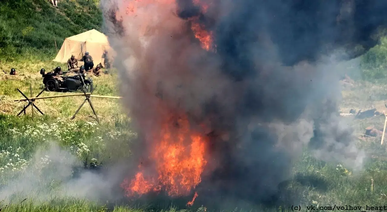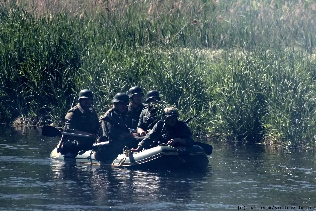 Июнь 1941-го, жарища, мирные жители, перебежчик, обстрелы, наглые фошысты, форсирование реки... Правда, я был попаданцем (петлицы из августа, винтовка вообще из 1942 года), а потому прятался на холмике вместе с пиротехниками. И неплохо подкоптился, когда от взрывов начала гореть трава :)
