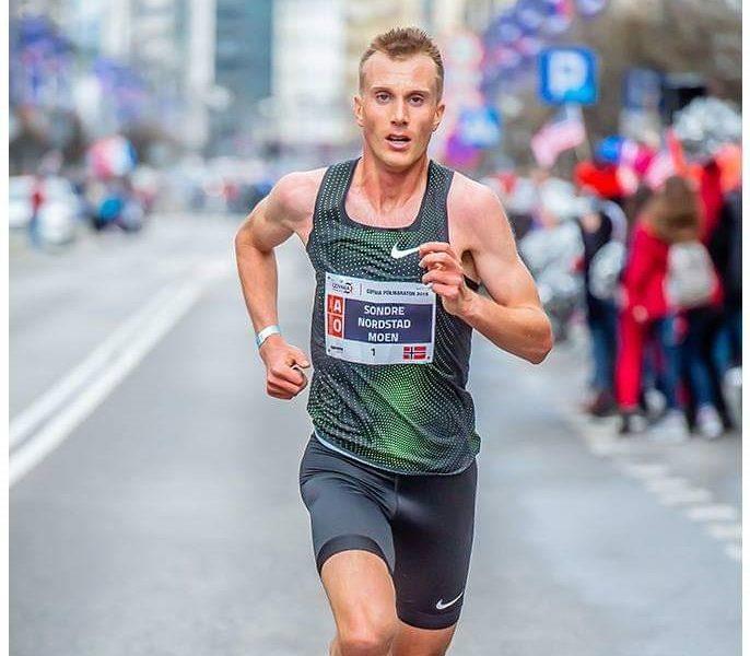 А вот в плане скорости Снебьёрна я ориентировалась на другого норвежского легкоатлета, марафонца Сондре Нордстада Моэна, чей личный рекорд в марафоне составляет 2 часа 5 минут и 48 секунд (Фукуокский марафон, 2017), а его личник на полумарафоне 59 минут и 48 секунд.