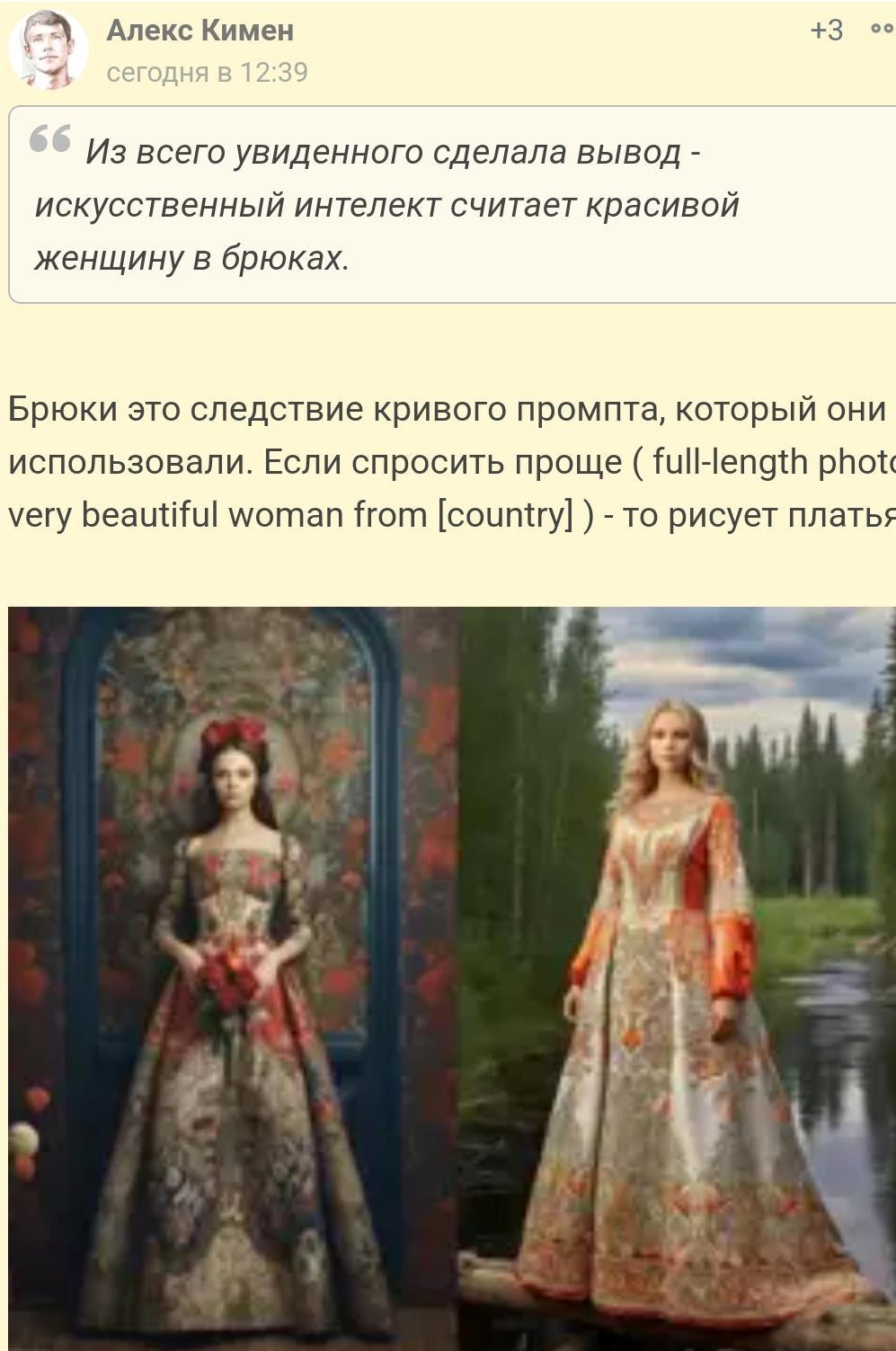 Из всего увиденного сделала вывод - искусственный интелект считает красивой женщину в брюках. (Наталия)