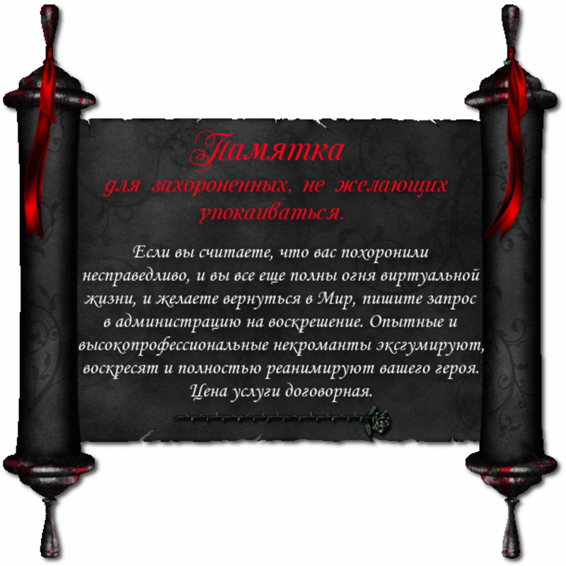 Если ваш знакомый неожиданно покинул бренный мир, устав от вас, от себя, от виртуальной жизни, вы тоже можете похоронить его персонаж здесь, и приходить поминать его.