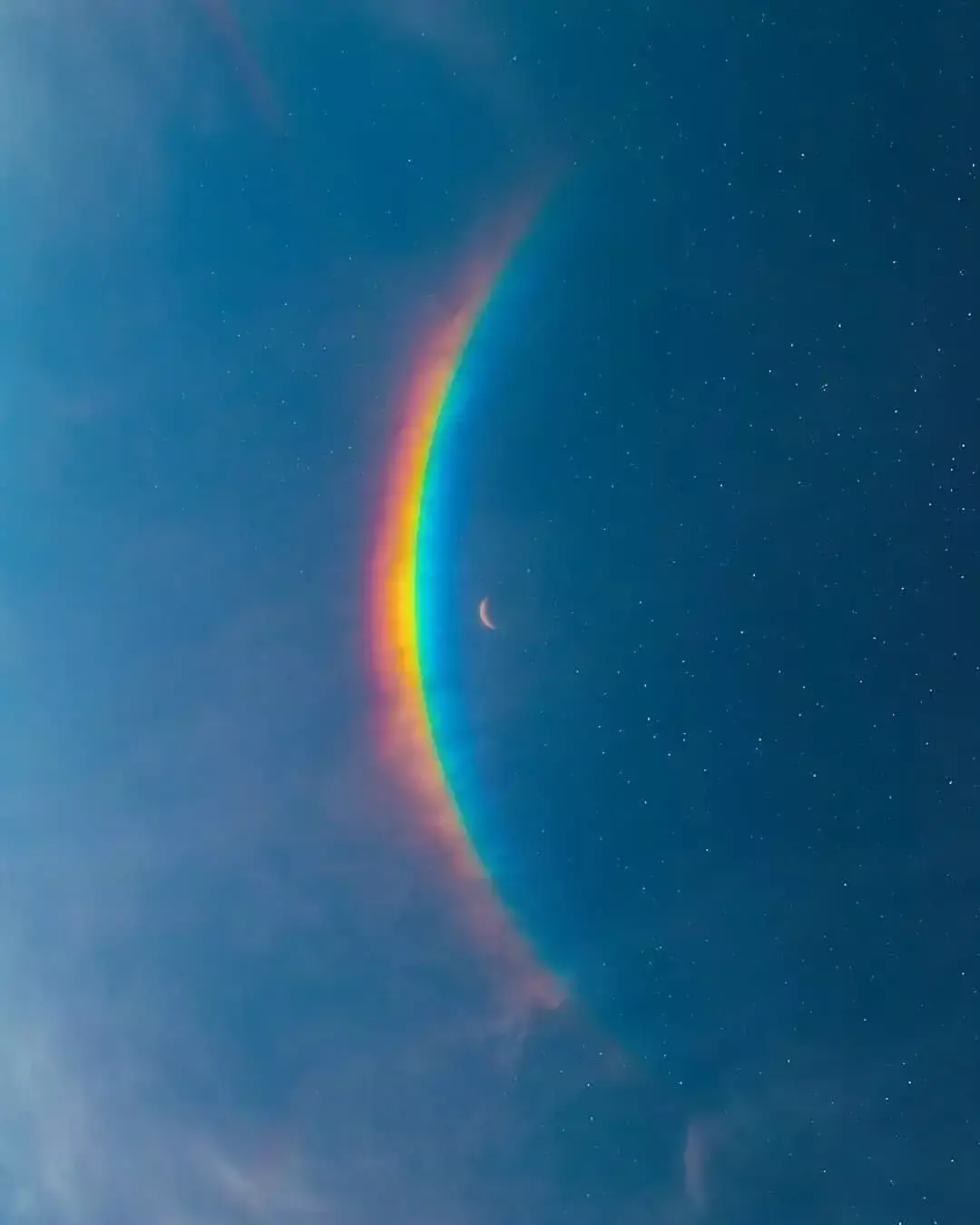 Редкая радуга, да ещё и рядом с полумесяцем