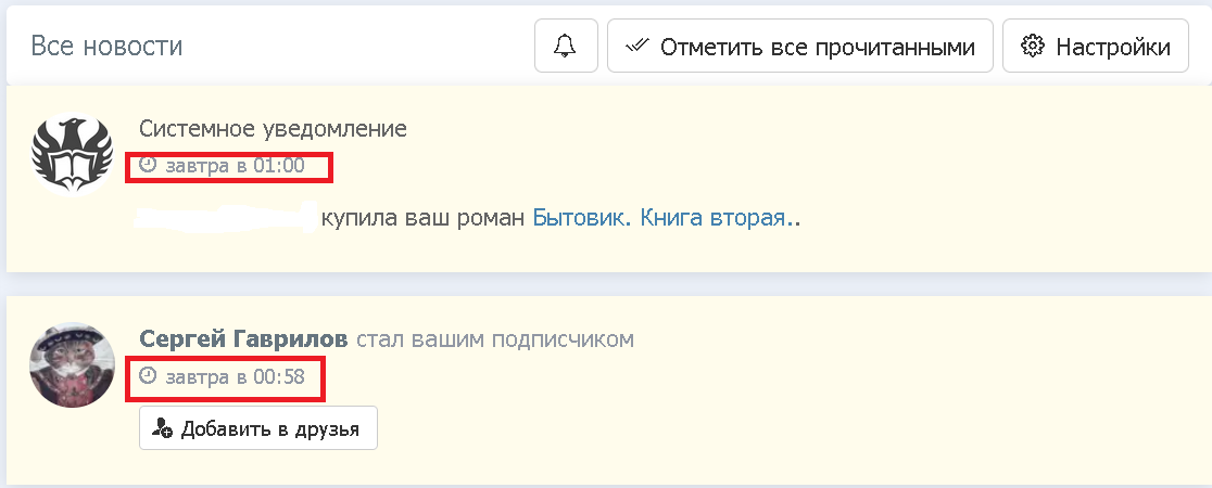 Автор: Дайтек СтаниславСтолкнулся с милым багом, мне пришли уведомления из завтра!