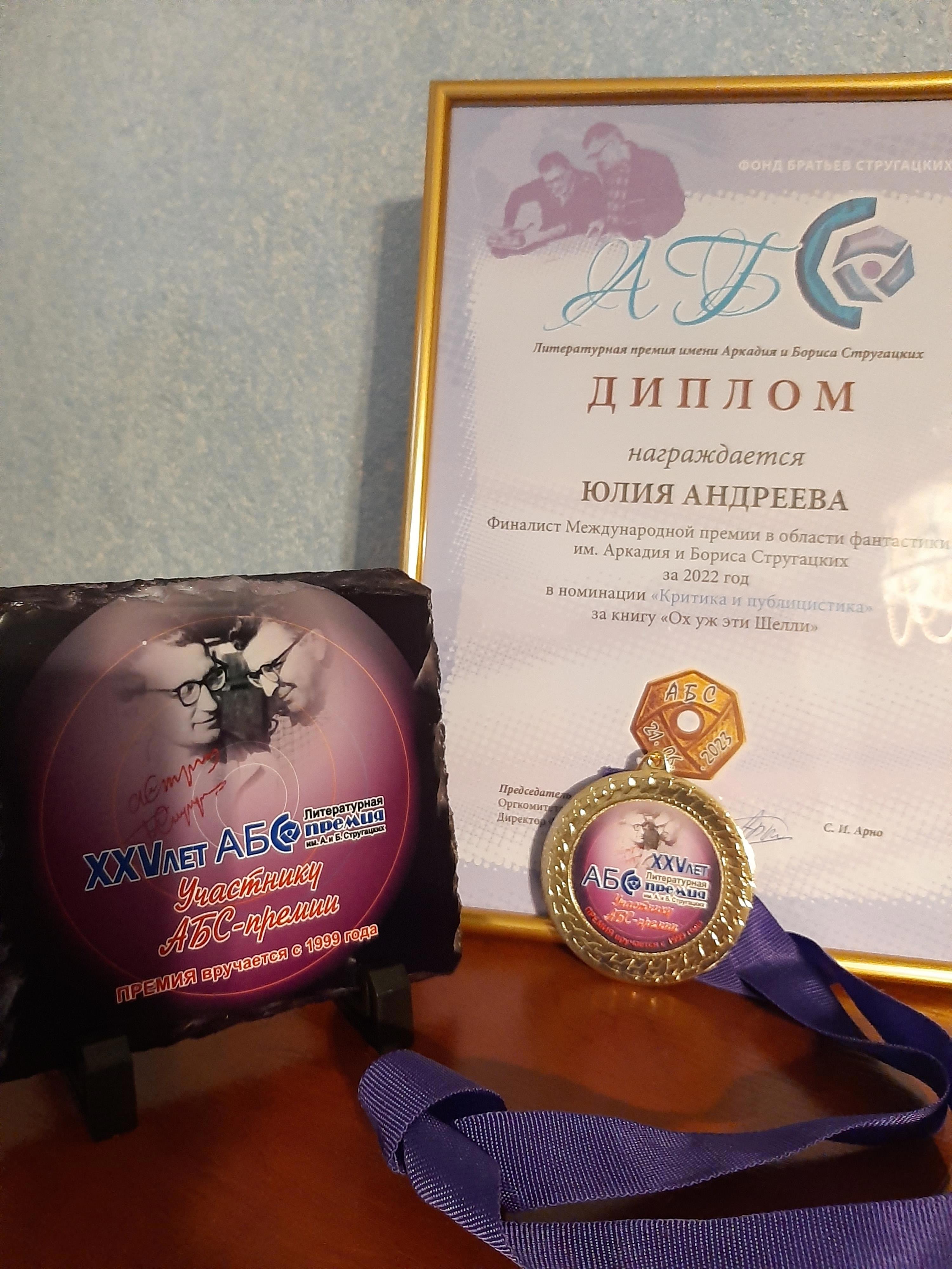 Книга "Ох уж эти Шелли" стала дипломантом АБС-премии им. Аркадия и Бориса Стругацких.