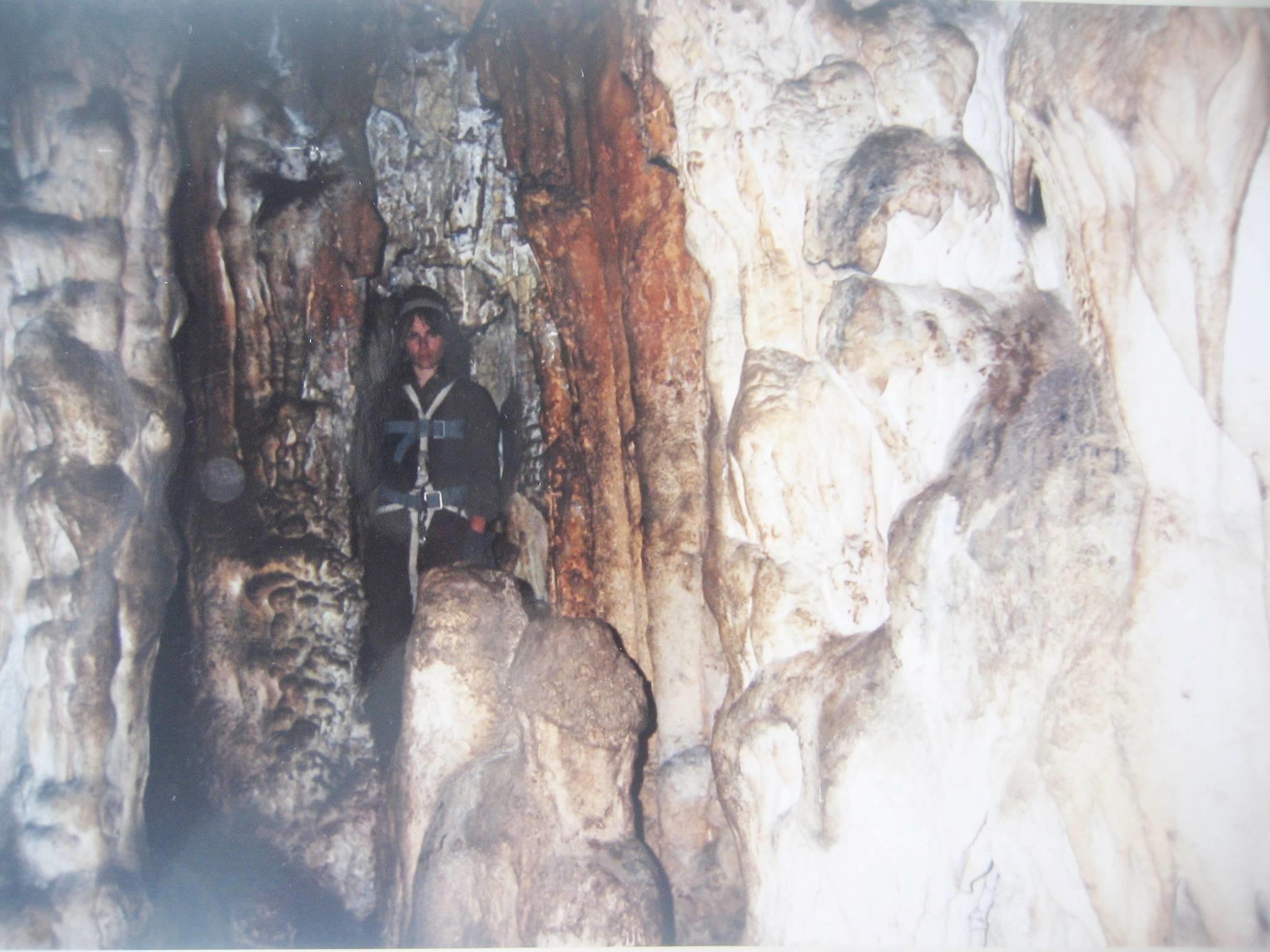 На пути до места спуска и обратно наш инструктор Дима травил страшные пещерные байки о Черной Кукле и Белом Спелеологе. Дима с большим пиететом относился к страхам спелеологов перед могущественными хозяевами пещер и пытался заразить этим страхом и нас -то есть мы как бы покупали у него одновременно и спуск в пещеру, и суеверные страхи. Он так запугал нас, что мы уже боялись ступить на любой недостаточно твердый участок почвы на горе, прикрытый лишайником и усыпанный ранними осенними листьями, и тряслись от страха, что провалимся в воронку -которых, по словам Димы, тут было немерено.