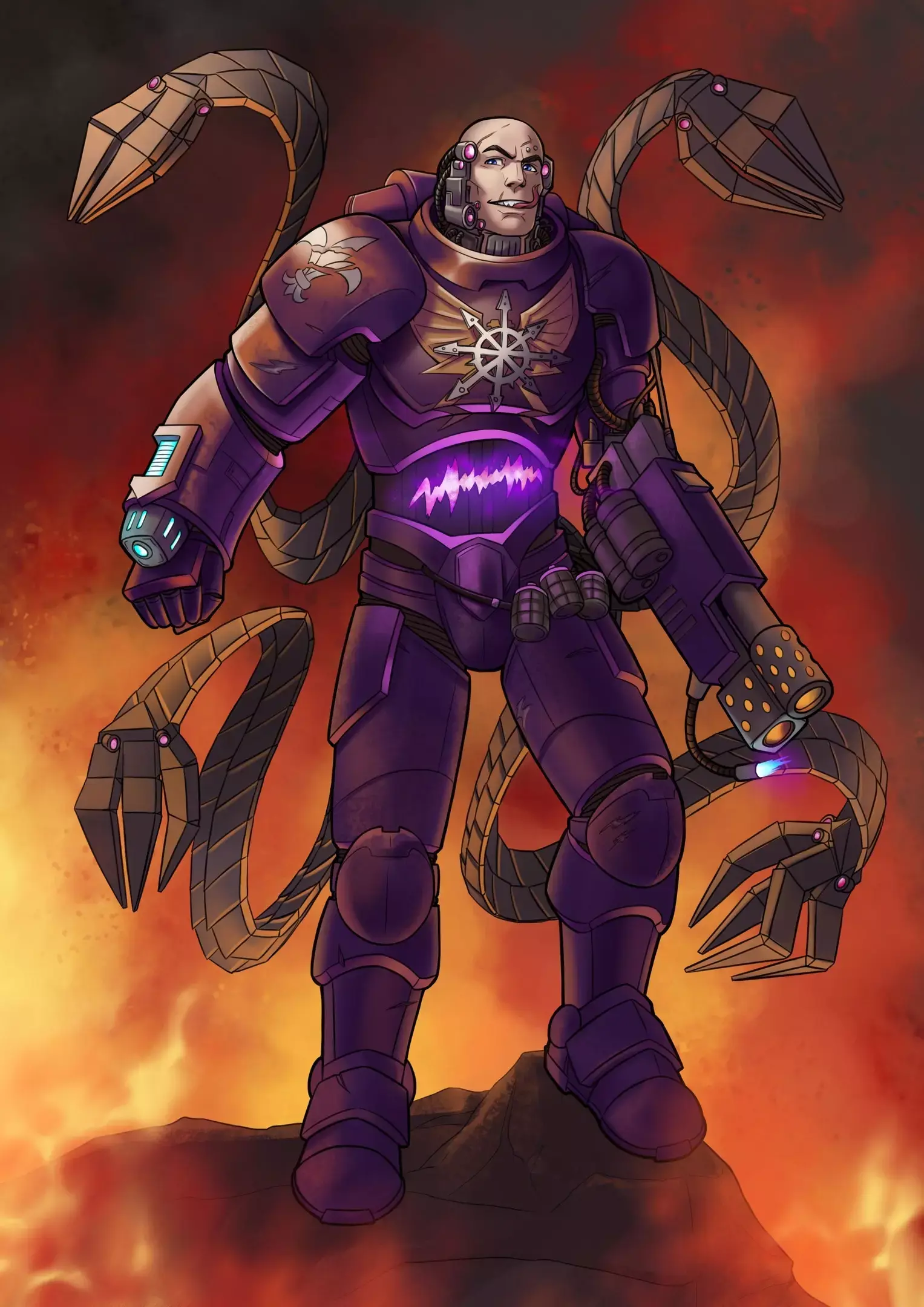 На борту у облитератора тяжёлый огнемёт, лазпушка в ладони, плазма, 4 механодендрита и инфодемон подчинённый (скрап-код само собой). Апд: и еще генератор преломляющего поля (невидимость).