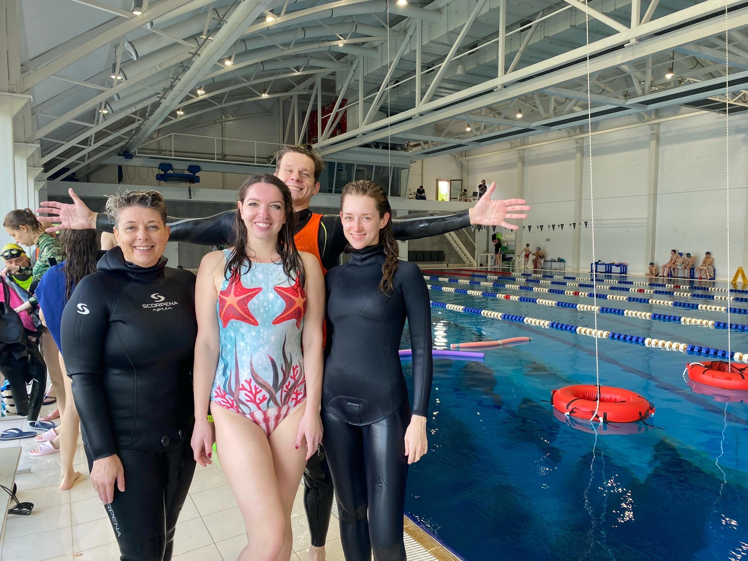 При этом – никакого пафоса. Плевать что я, в свои пятьдесят с хвостиком к соревам отношусь … скептически. Занимаются, буквально – нянькаются. Жену притащил, та вообще воды изначально боялась. И ничего! Внимания столько же, сколько и молодым ребятам-спортсменам, что готовятся к соревнованиям и чемпионатам. (Кстати, на прошедшем в этом мае Чемпионате мира в Кувейте, спортсмен клуба, Владимир Амвросов взял золото сразу в двух дисциплинах!)