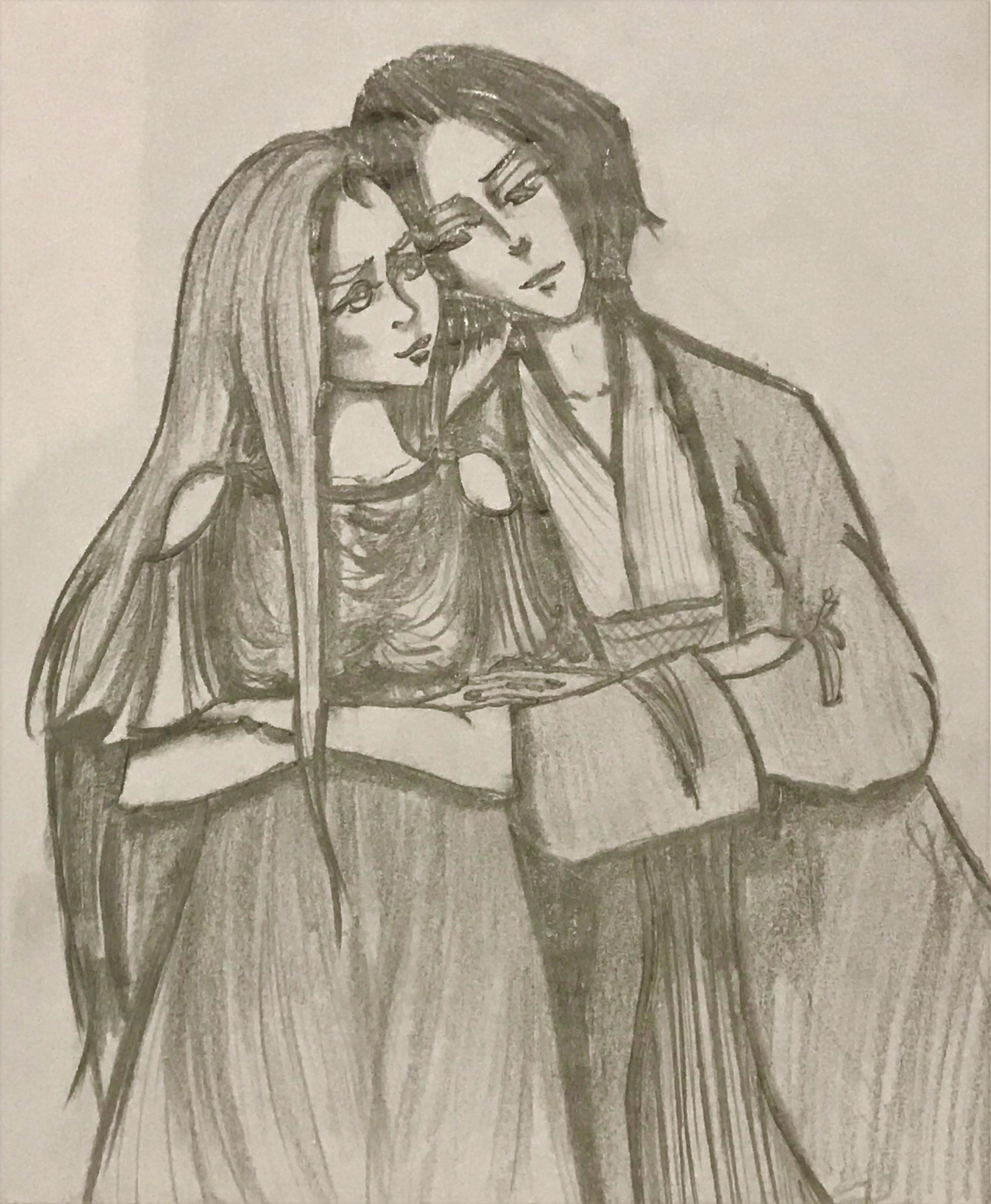 ПС. Сейчас я выйду из зоны комфорта и поделюсь с вами очень старыми рисунками своей лав-парочки - Саи и Сантара. Данный рисунок нарисован очень давно, это вам не нейросетушка, а мои кривые ручки, так что давайте вы просто скажете, что я талант, а я сделаю вид, что поверила))
