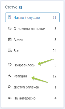 2) Мы добавили личные Реакции на произведения и соответствующий раздел в библиотеке пользователя.