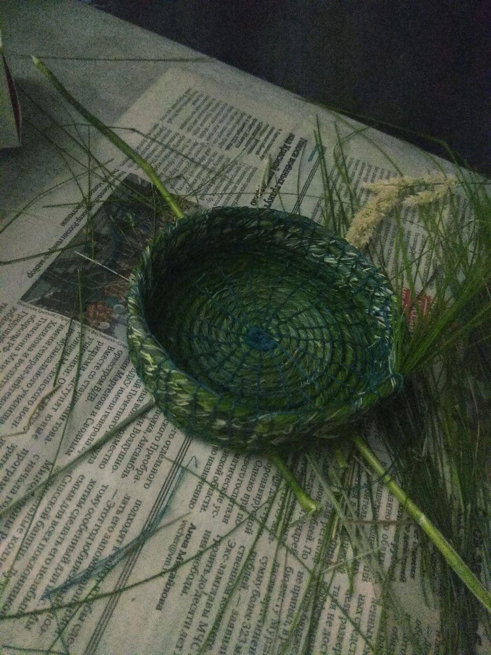 Погода пасмурная. Утром пролил сильнейший ливень, (спасибо, что не с градом!) На улице делать нечего. И я весь день занимаюсь разбором вещей и периодически -- плетением травяной корзинки.