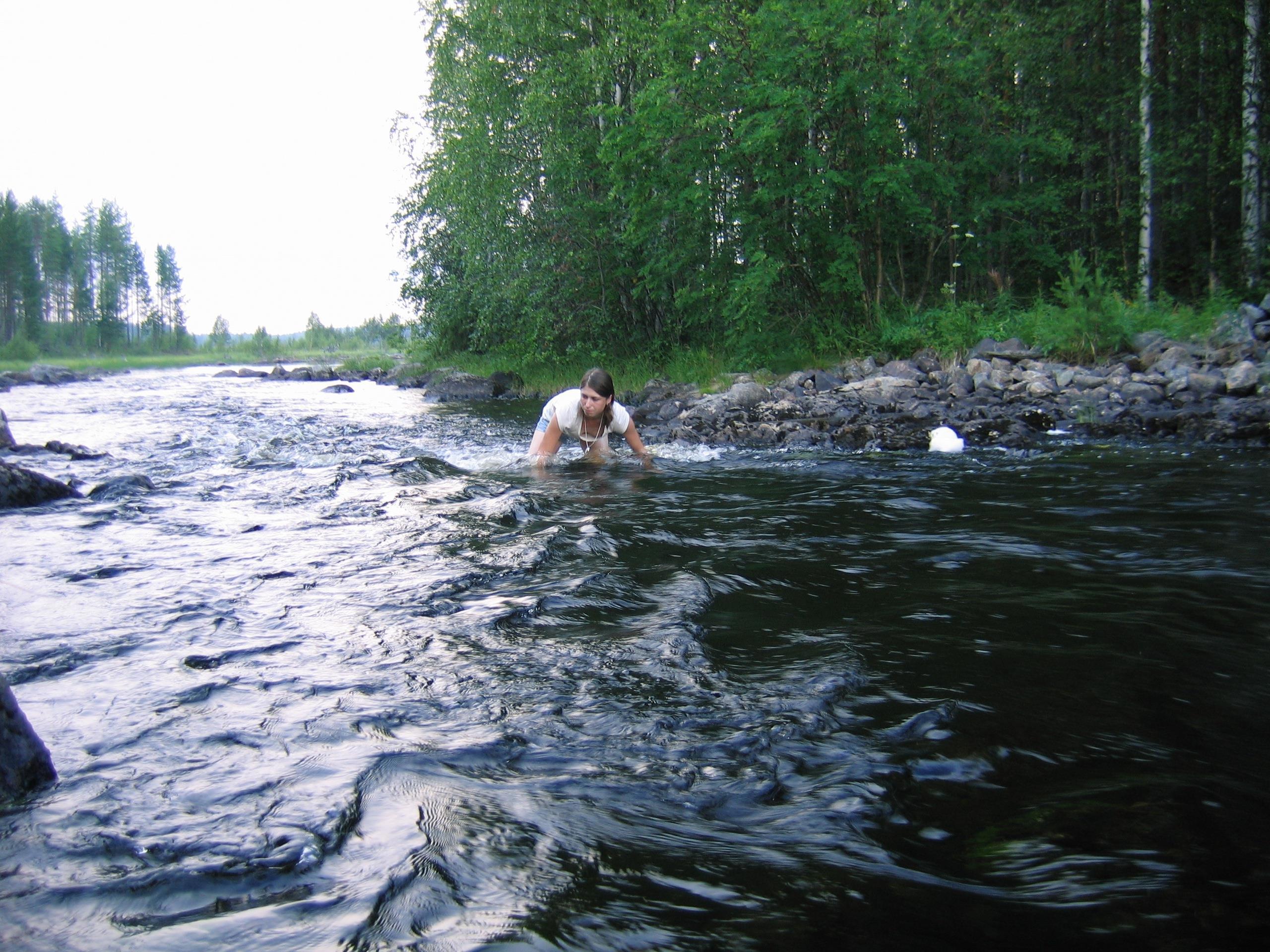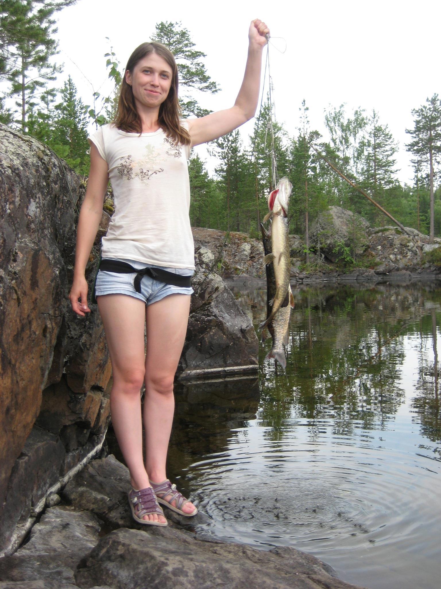 Добытчица.На привалах отправляли поймать что-то для приготовления.Дальше- в воде приходиться спасать зацепившуюся блесну.Самый приятный подарок был,когда парень подарил крутой спиннинг.