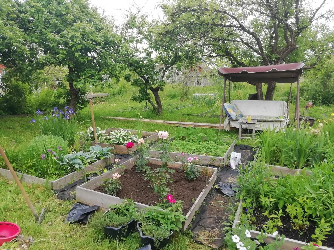А ещё мы сегодня высадили пять розочек - расчистили под это дело одну из клумб, сделанных ещё в первый год владения садом :)
