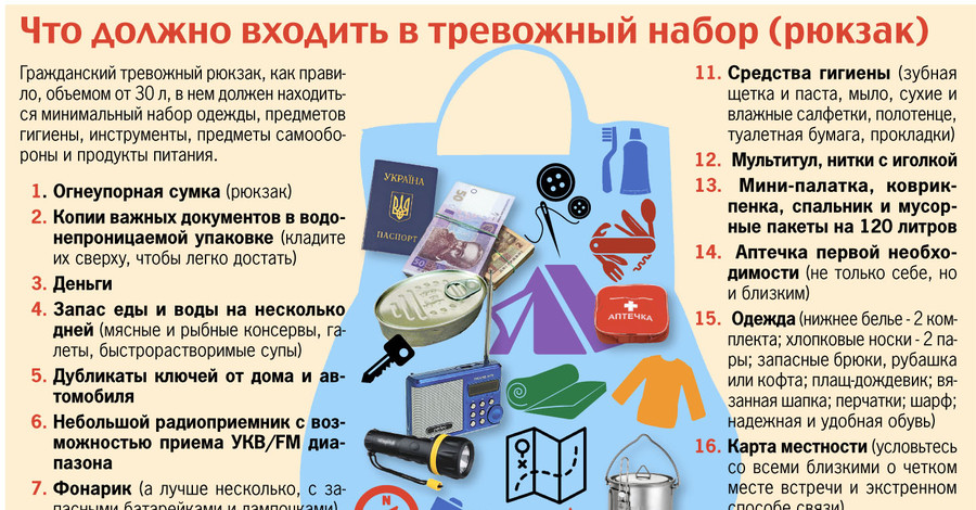 Первый: ТЧ (Тревожный Чемоданчик, или тревожный рюкзак). Ещё со времён окончания Второй Мировой и начале Холодной Войны (1946-1991-й год) в рядах Советской Армии создалась такой способ быстро, а главное без задержек прибыть на свой боевой пост с вещами и приступить к своей работе. В него обычно входил комплект сменного белья, предметы быта (спички, фонарик, батарейки, карта, документы). Этот метод для некоторых актуален и по сей момент, и ТО если вы точно уверены, что эвакуационном пункте вы будете спасены и отправлены в место, где о вас позаботятся, то тогда ТЧ в руки и вперёд, в безопасное место.