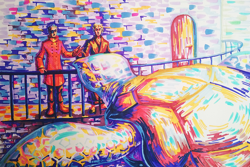 Черепаха зависла у балкона. Положила на перила белый клюв. Арто видела в ее глазах свое отражение, но почему-то перевернутое.
