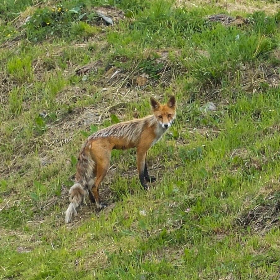 Причем она разгуливала прямо по деревенской улице, потом, когда мы остановились, долго сидела рядом - видимо, ждала пожрать, но у нас, увы, ничего не было :(