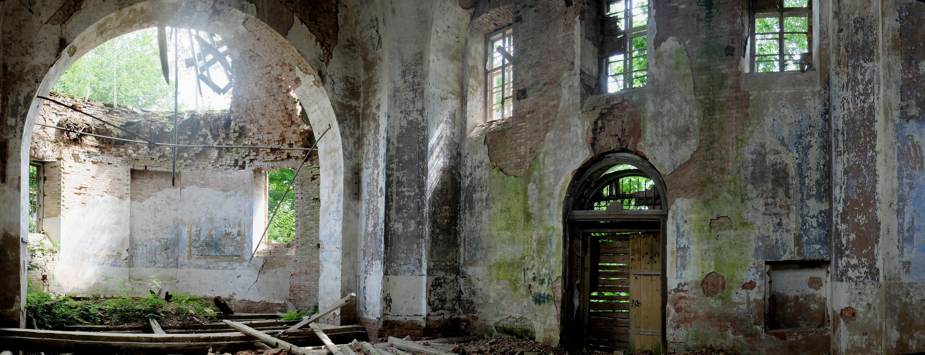 Перед этим мы были тут в 2011 году. С тех пор мало что изменилось - колокольню разрушили ещё в начале войны, трапезную, скорее всего - примерно в то же время. Местные предупредили нас, что стоит быть осторожнее - иногда падают кирпичи.