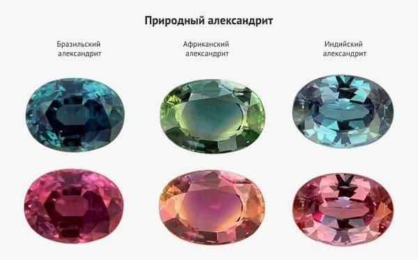 Александрит - природный камень, наиболее ценная хромсодержащая разновидность минерала хризоберилла (BeAl2O4). Натуральный камень александрит отличается от желтовато-зелёного хризоберилла тем, что обладает сильным плеохроизмом. Александрит меняет окраску от тёмной сине-зелёной, голубовато-зелёной, тёмной травяно-зелёной, оливково-зелёной при дневном свете до розово-малиновой (англ. red glow - красное свечение (горение, каление)) или красно-фиолетовой, пурпурной при вечернем или искусственном свете.«Александритовый эффект» вызван особенностями строения кристаллической решётки минерала и определённым положением в ней хромофорных ионов трёхвалентного хрома. Некоторые александриты обладают эффектом «кошачьего глаза» - опалесценцией.