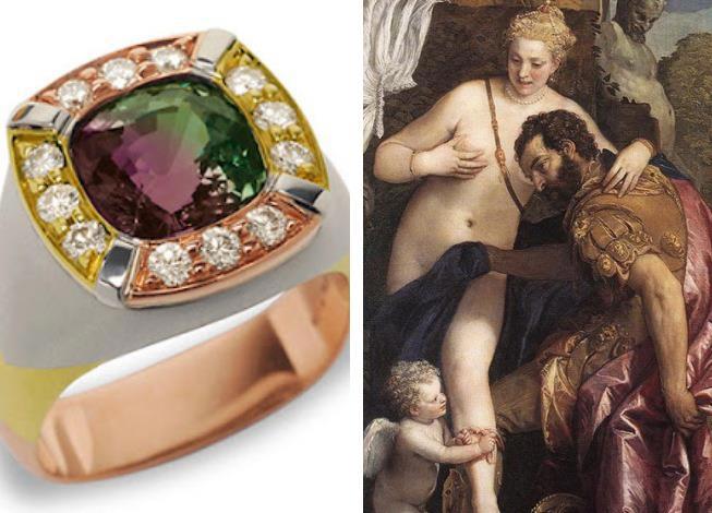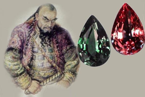 Самое древнее украшение с александритом археологи нашли при раскопках кургана-могильника 12 века - на руке похороненного там половецкого правителя - роскошный золотой перстень с огромным удивительным камнем.